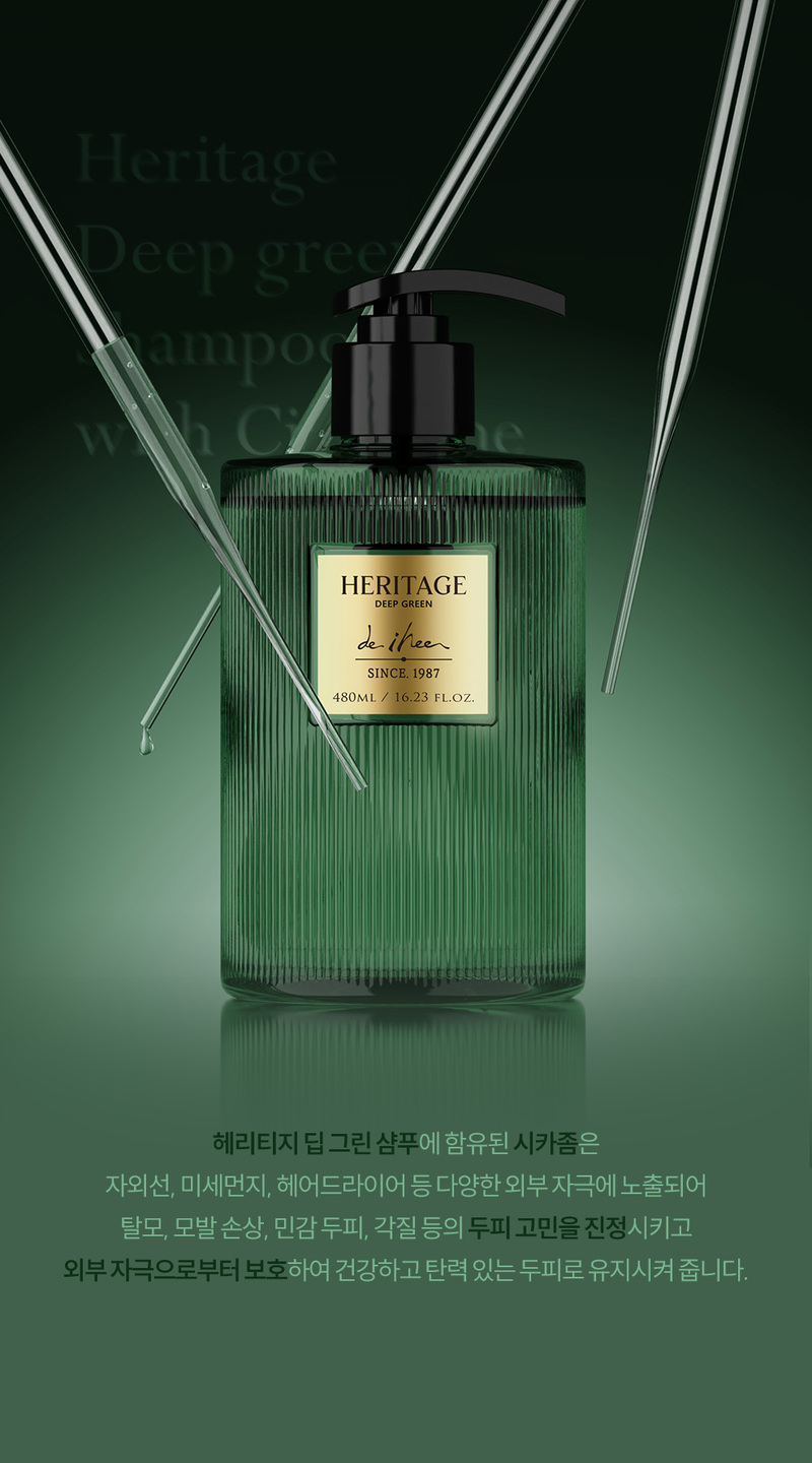 This Heritage Deep Green Shampoo features advanced Cica Exosome technology, where particles 300 times smaller