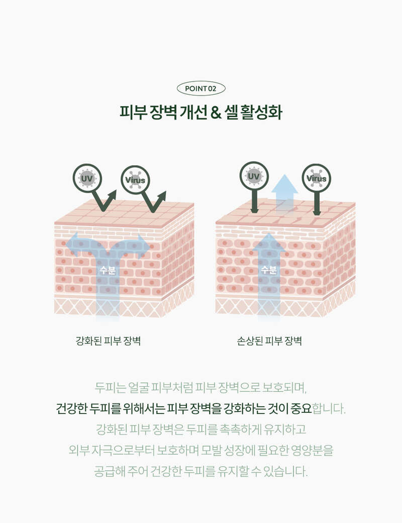 - Scalp Barrier Care: Strengthens the skin barrier to maintain moisture and protect against external irritants like fine dust and UV rays.