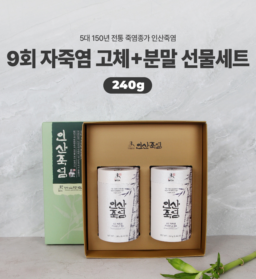 [INSAN BAMBOO SALT] 9X Roasted Premium Purple Bamboo Salt solid 240g + Powder 240g set – Mineral-Rich Antioxidant Salt _ Made in Korea