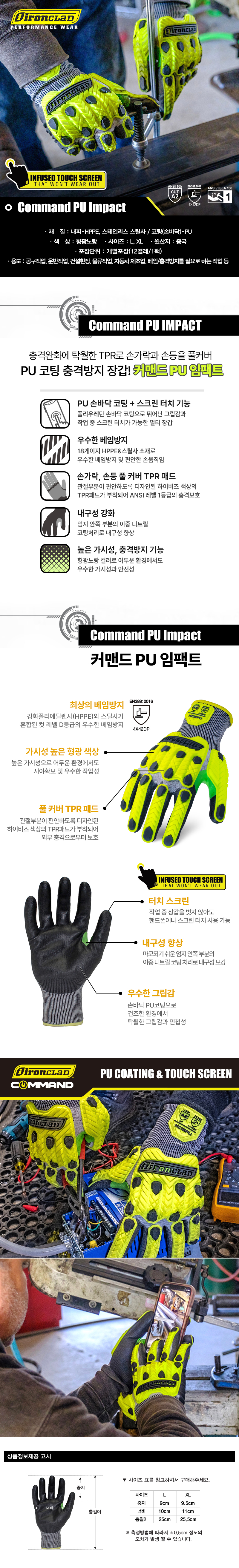 IRONCLAD Command PU Impact Gloves, Anti-shock, Anti-cut, Cut D level, ANSI 2, Inner skin-HPPE, stainless steel yarn / coating (palm)-PU, nitrile coating, TPR pad