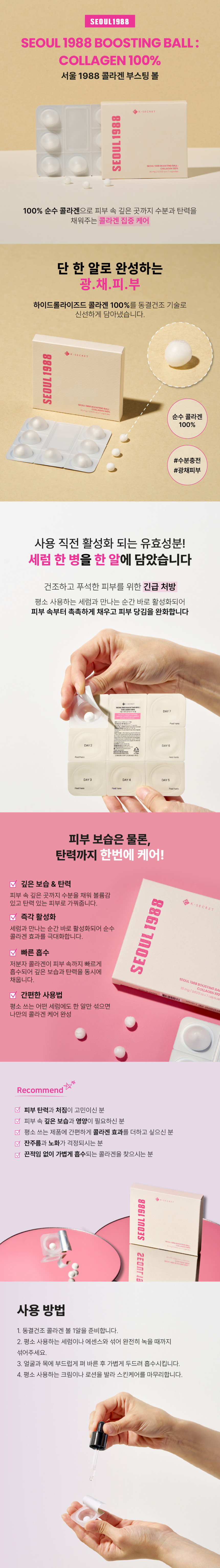 K-SECRET SEOUL 1988 Boosting Ball 100% Pure Collagen 7 Capsules Freeze-Dried Hydrating Glow Elasticity Shot _ Made in Korea