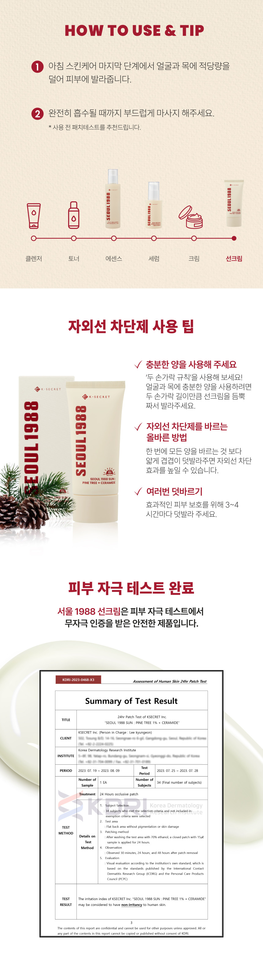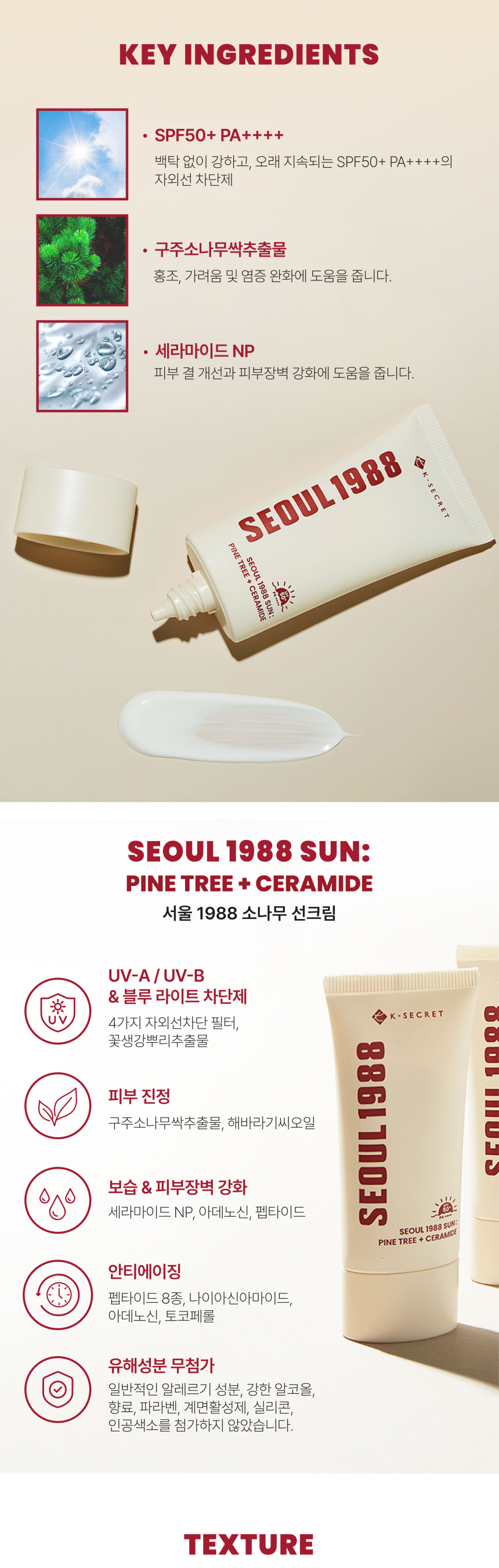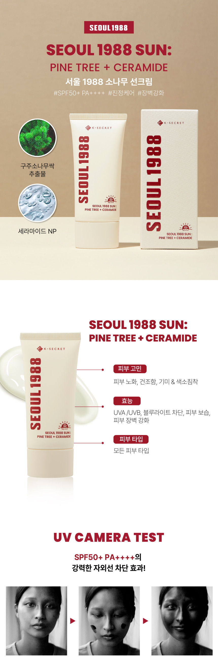 K-SECRET SEOUL 1988 Sun Pine Tree and Ceramide 50ml SPF50+ PA++++ UVA UVB Blue Light Protection Sunscreen _ Made in Korea