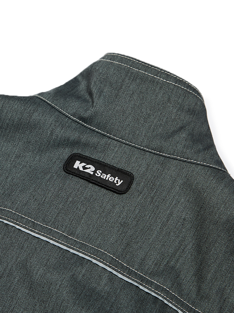 K2 Safety Denim Work Jacket - Durable, Easy-Care & Reflective (Grey) 21JK-A160R