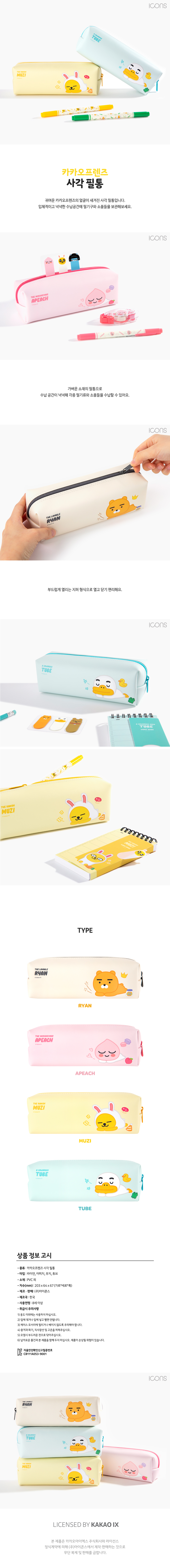Kakao Friends Character Face Square Pencil Case | 3D Spacious Storage | Lightweight PVC Material | Made in Korea