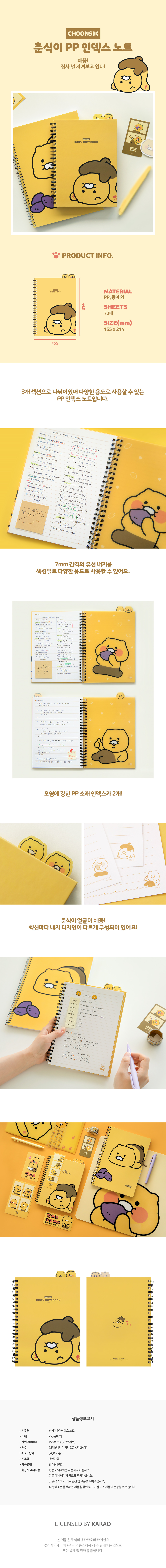 Kakao Friends Choonsik PP Index Spiral Notebook (3 Sections) | 72 Sheets Lined Note | 360° Twin Ring | 7mm Rule Made in Korea