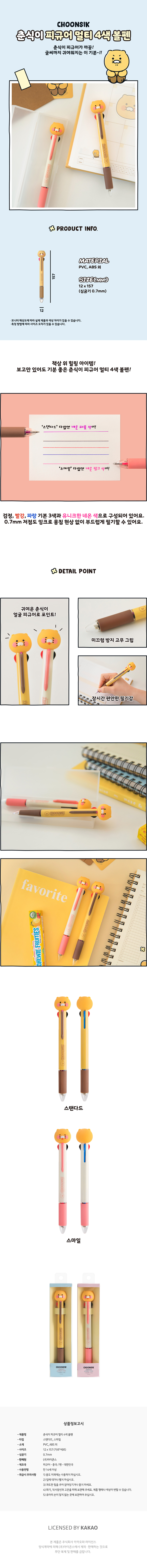 Kakao Friends Choonsik Smile Figure Multi 4-Color Ballpoint Pen 0.7mm | Oil-Based Ink + Neon Pink | Non-Slip Rubber Grip | Made in Korea