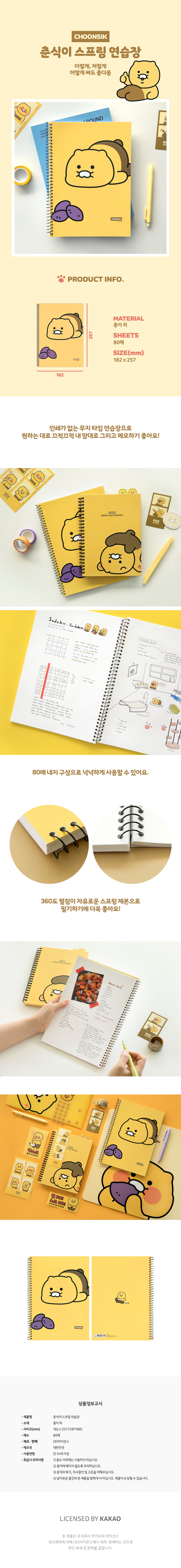 Kakao Friends Choonsik Spiral Practice Notebook | Plain/Blank Pages 80 Sheets | 360° Folding | Made in Korea