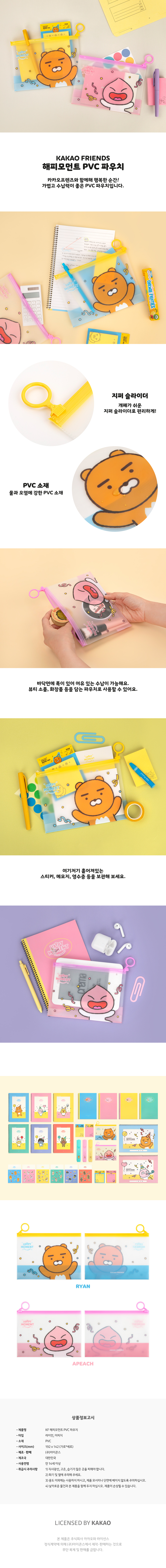 Kakao Friends Happy Moment PVC Pouch | Wide Storage Multi Pouch | Water/Stain Resistant | Made in Korea (Ryan, Apeach)