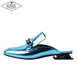 [KUHEE] 3.5cm Crack Mule(6735)-SI- Ruffle Genuine Leather Airfit Flat Shoes Sandals Slippers Shoes-Made in Korea