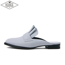[KUHEE] Mules 2120K 4cm - Simple Classic Casual Ruffled Strap Sheepskin Latex Shoes - Made in Korea
