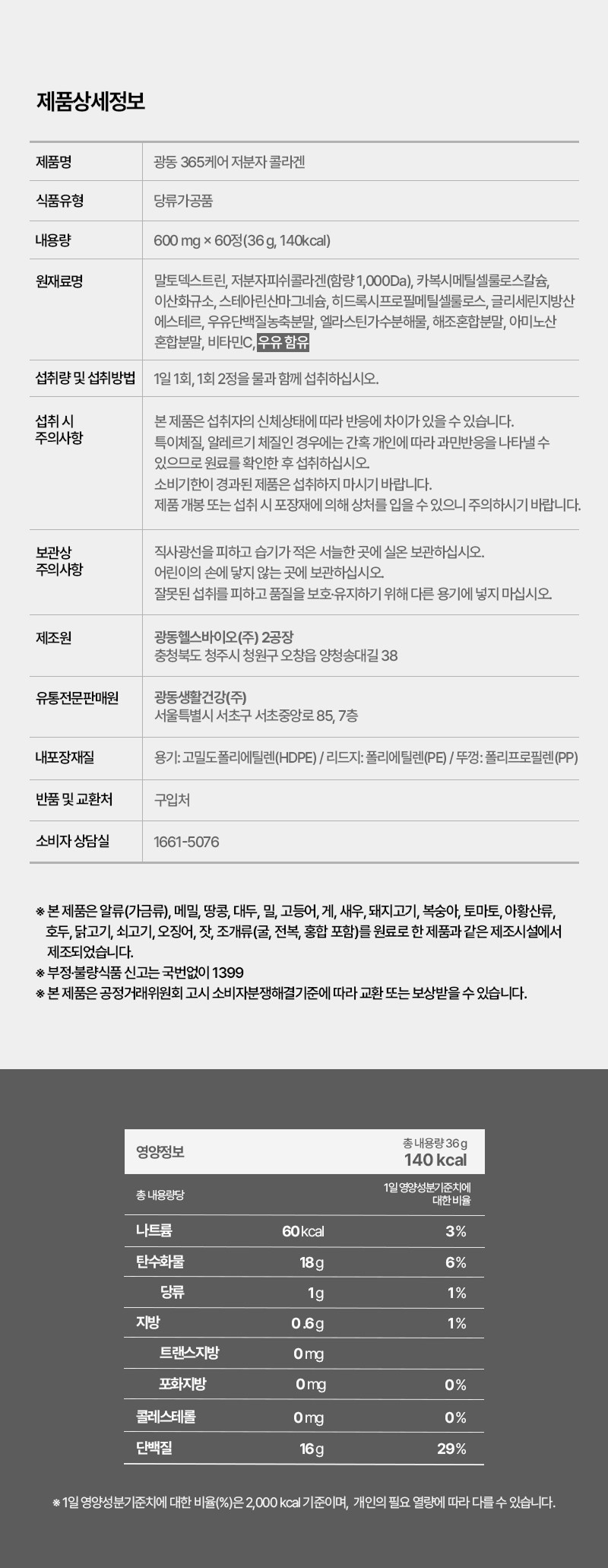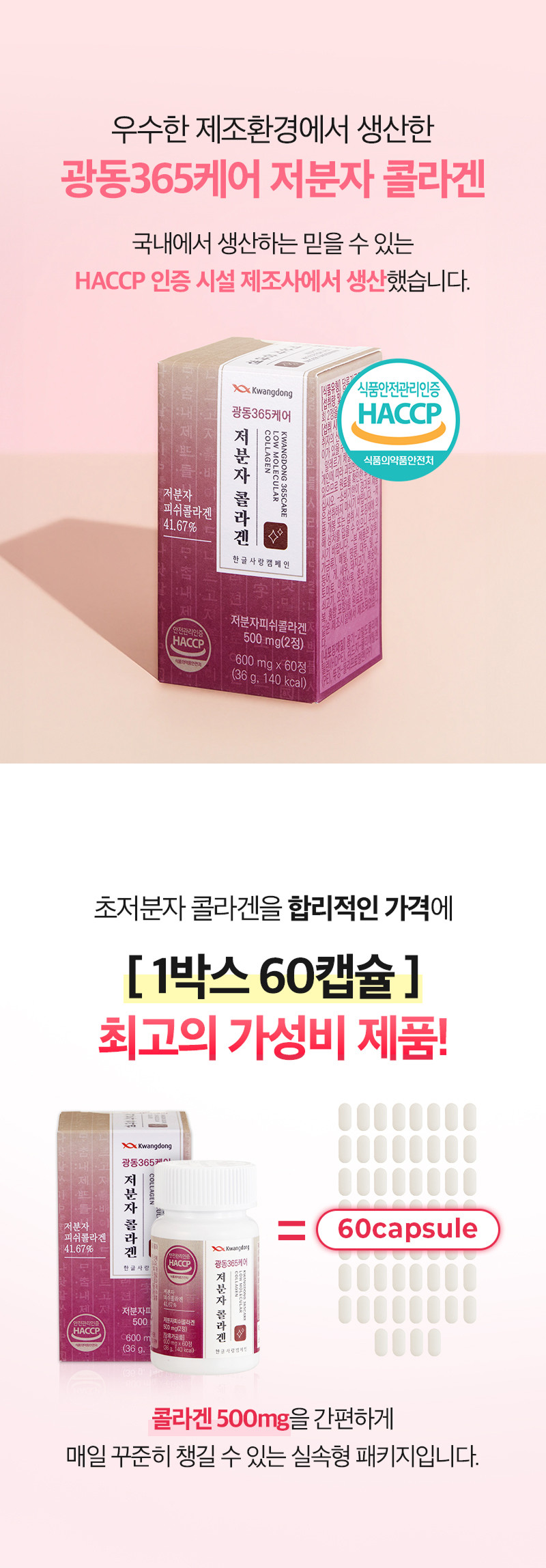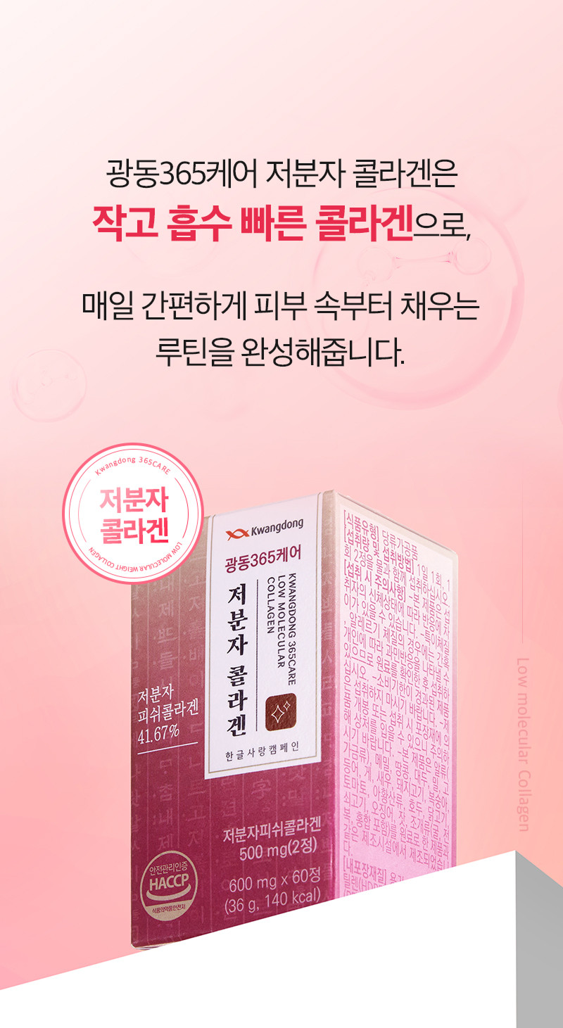 Kwangdong 365CARE Ultra-Low Molecular Fish Collagen 1000Da, 180Tablets (3-Month Supply) — Hydrolyzed Collagen Peptides for Skin Elasticity & Hydration _ Made in KOREA