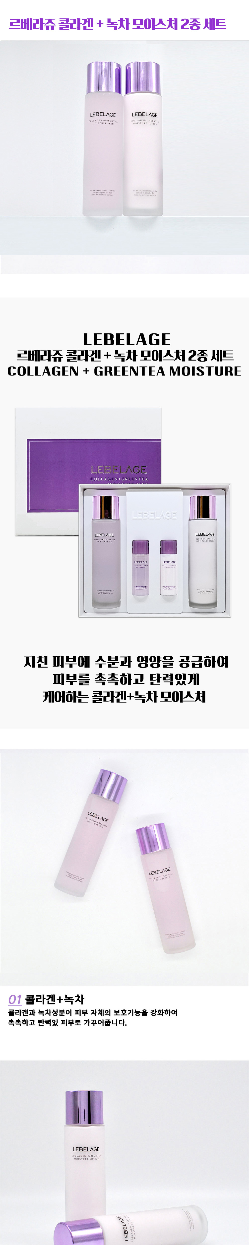 LEBELAGE Collagen and Green Tea Moisture Two Piece Skincare Set for Elasticity and Deep Hydration Nourishing Daily Care _ Made in Korea