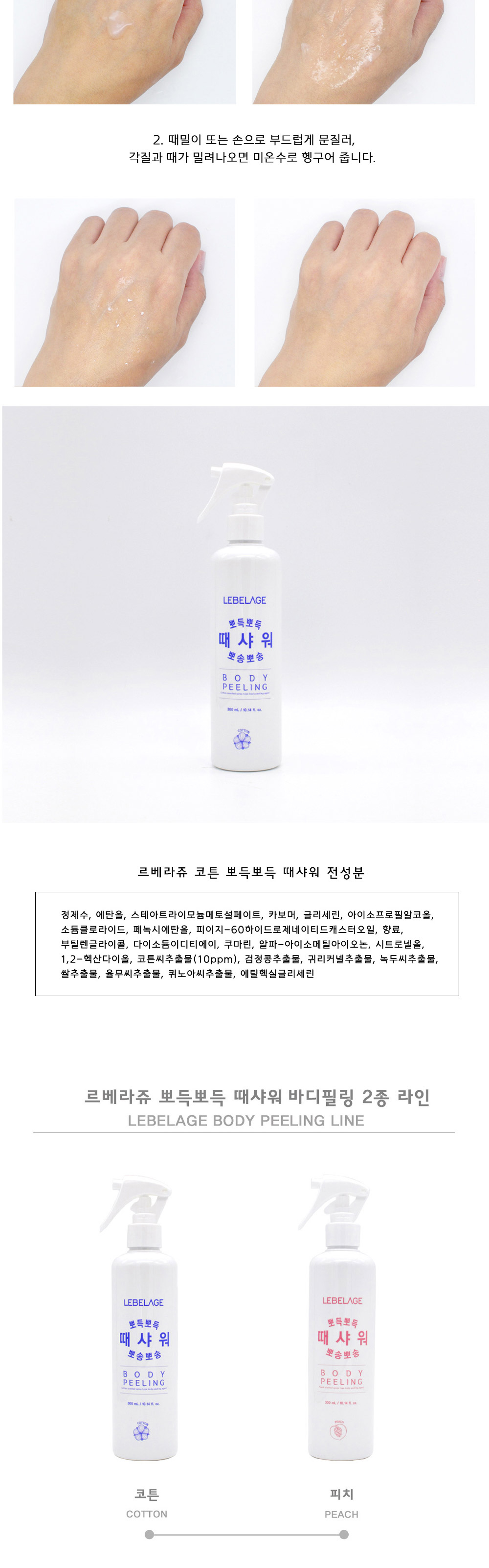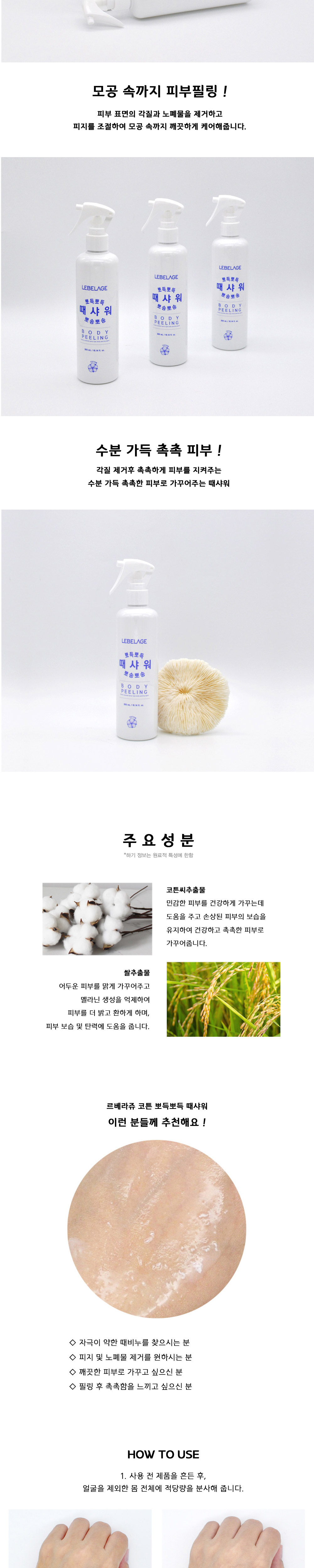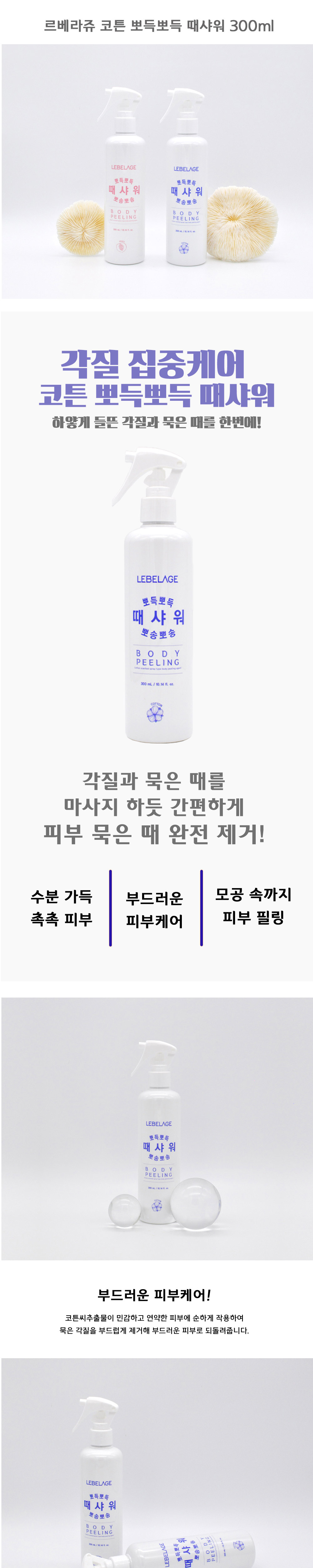 LEBELAGE Cotton Body Peeling Shower 300ml for Intensive Dead Skin Cell Removal and Moist Brightening Care _ Made in Korea