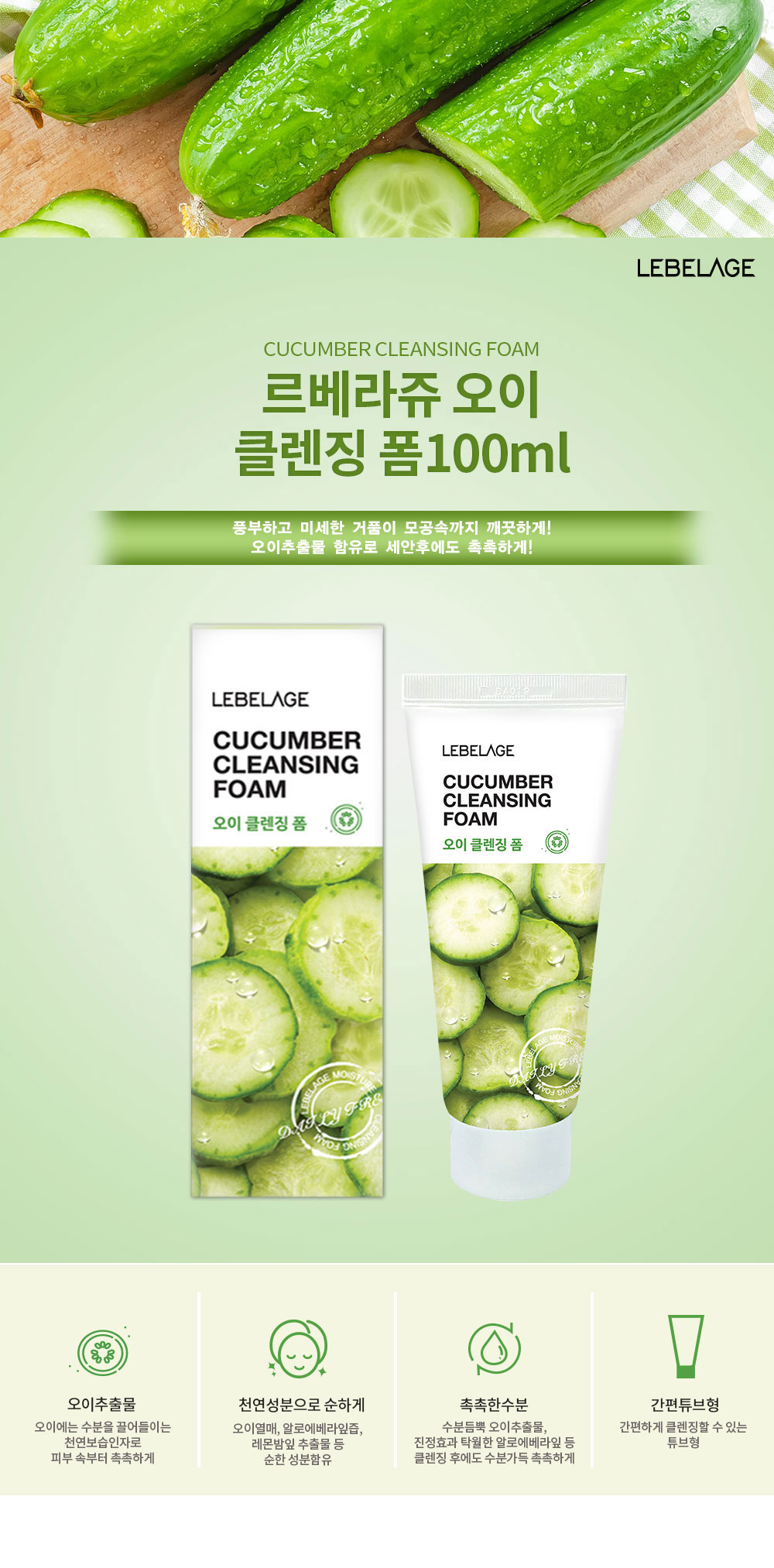 LEBELAGE Cucumber Cleansing Foam 100ml Ultra Hydrating Face Wash with Cucumber Extract and Aloe for Refreshing Deep Clean _ Made in Korea