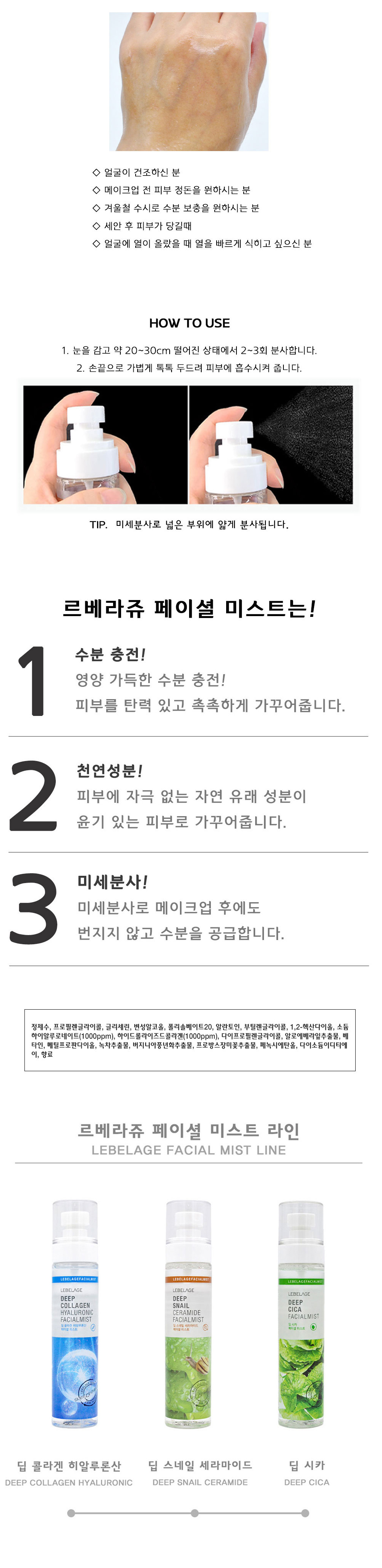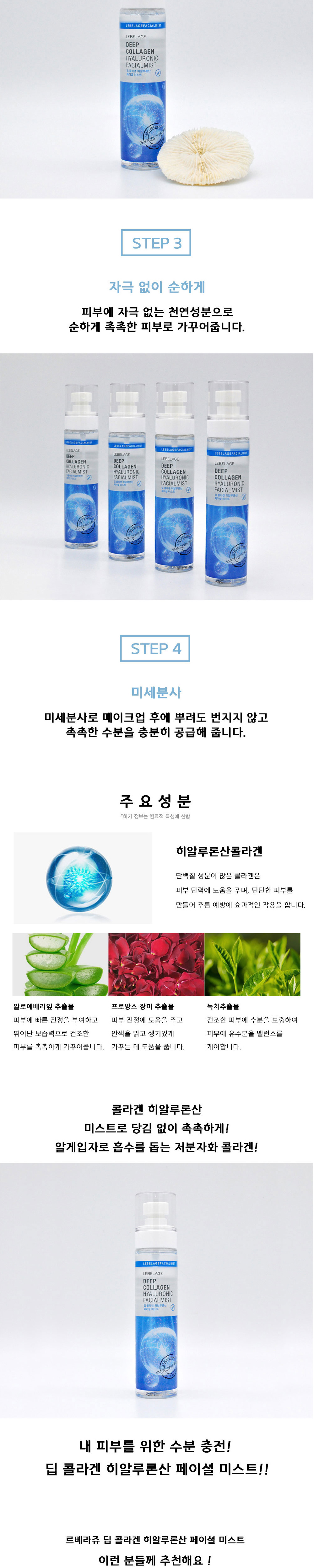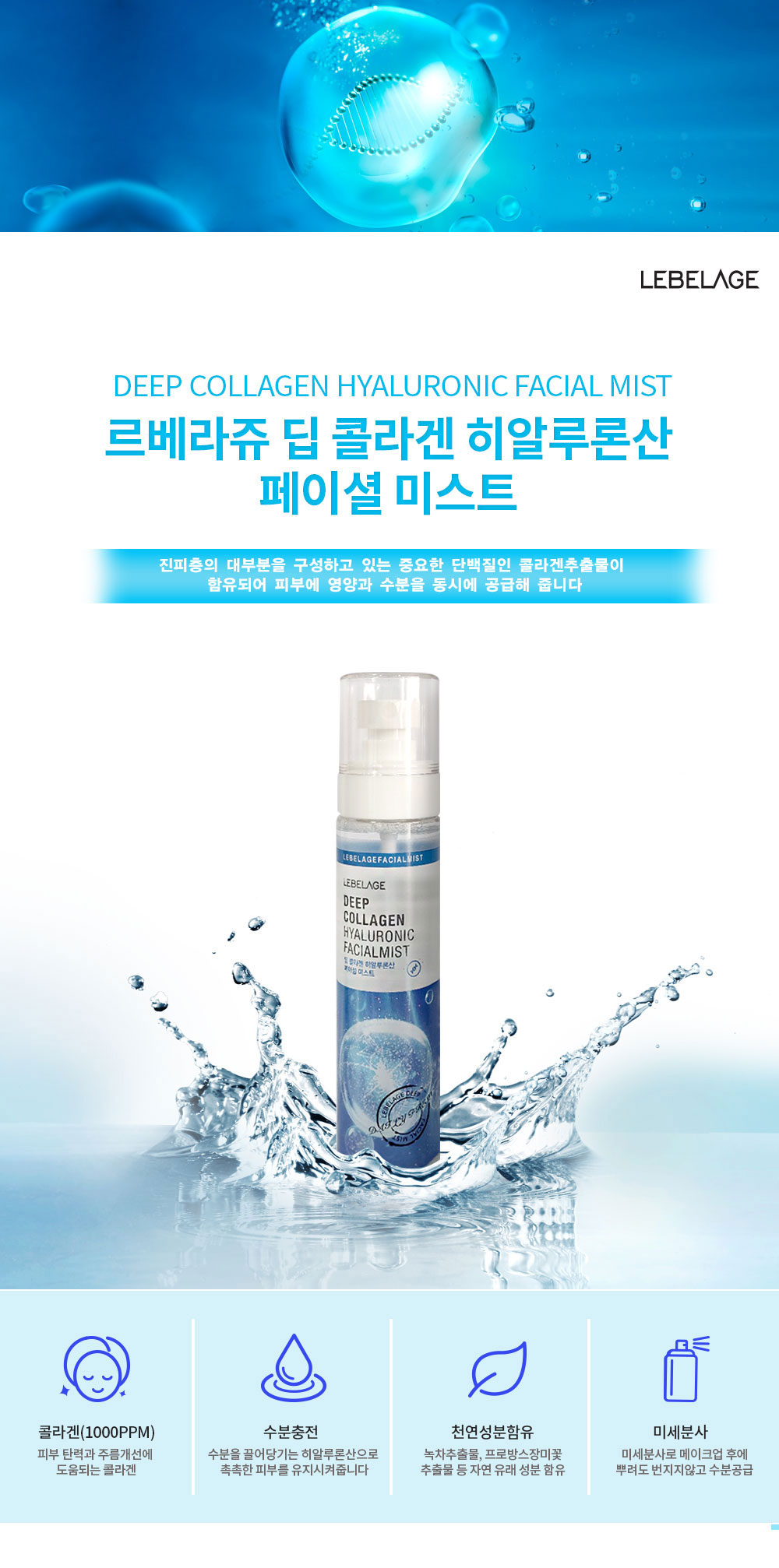 LEBELAGE Deep Collagen Hyaluronic Facial Mist for Intense Hydration Skin Elasticity and Fine Mist Moisture Supply _ Made in Korea
