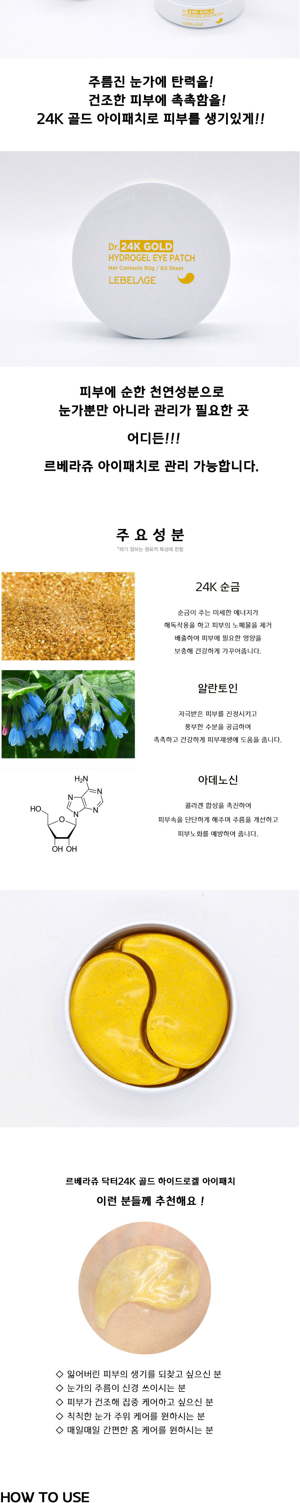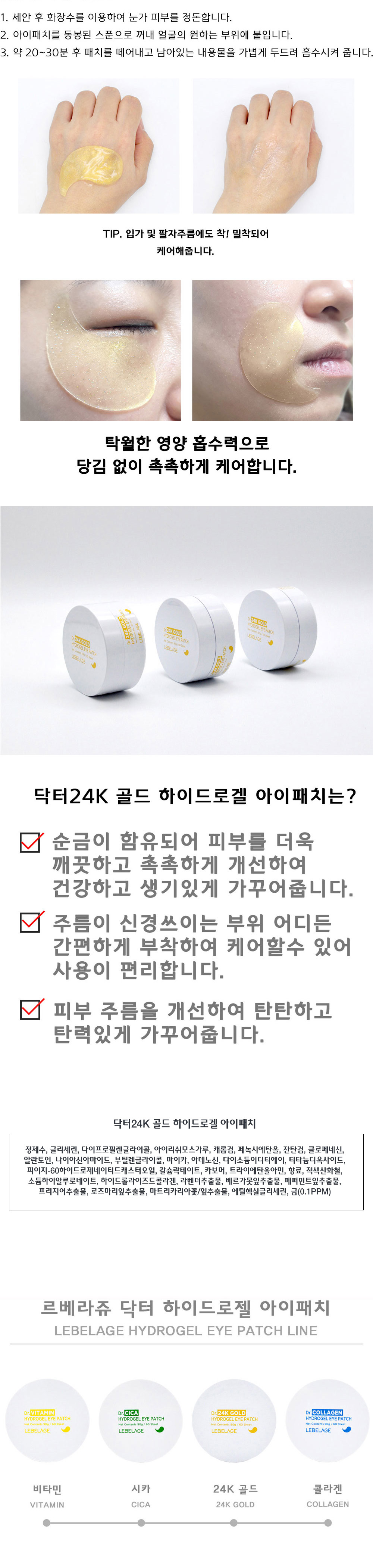 The LEBELAGE Dr. 24K Gold Hydrogel Eye Patch is premium skincare designed to restore life to tired skin. Infused with 99.9% pure gold,