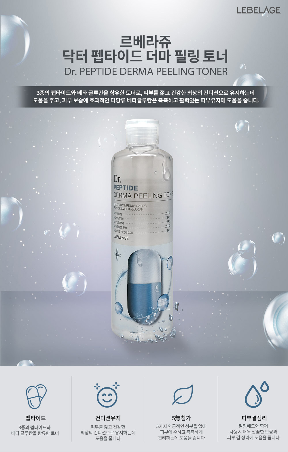 LEBELAGE Dr. Peptide Derma Peeling Toner 310ml with Triple Peptides and Beta-Glucan for Youthful Vitality _ Made in Korea