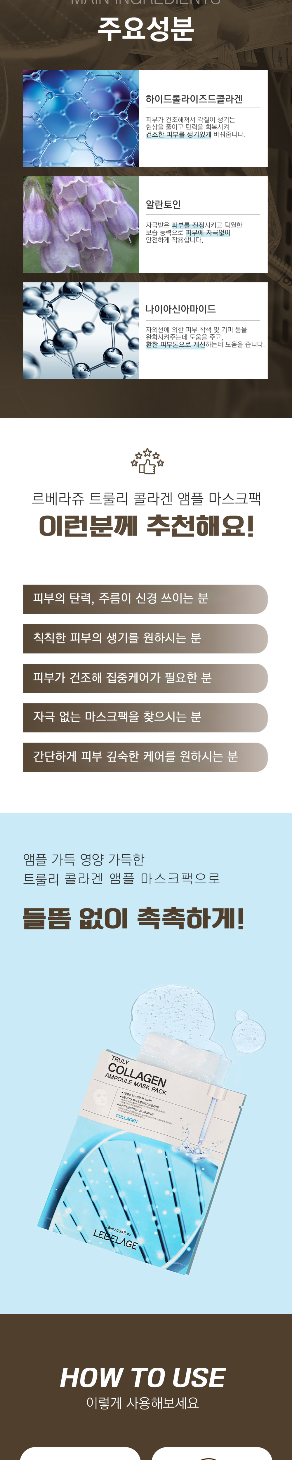 LEVERAGE Truly Collagen Ampoule Mask Pack 20 Sheets – Intensive Brightening & Firming Care _ Made in Korea