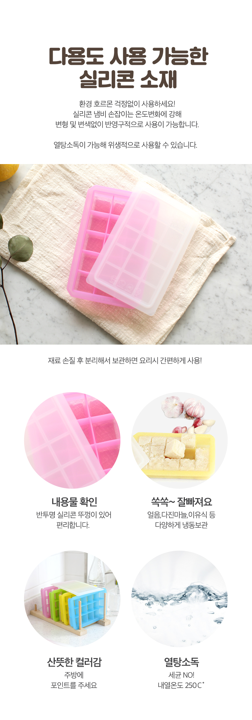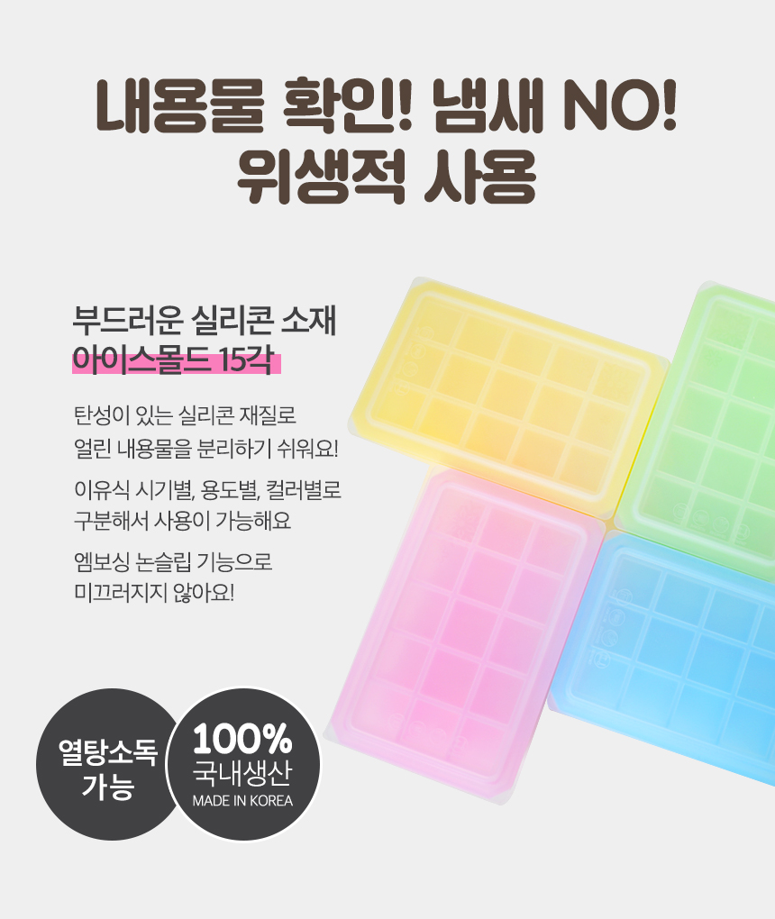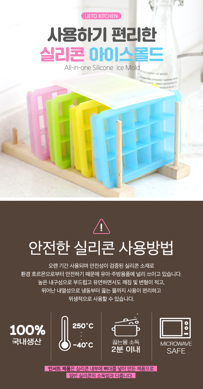 [Lieto_Baby]Lieto Silicone Ice Mold 15 Cubes_Embossing non-slip function_Made in KOREA