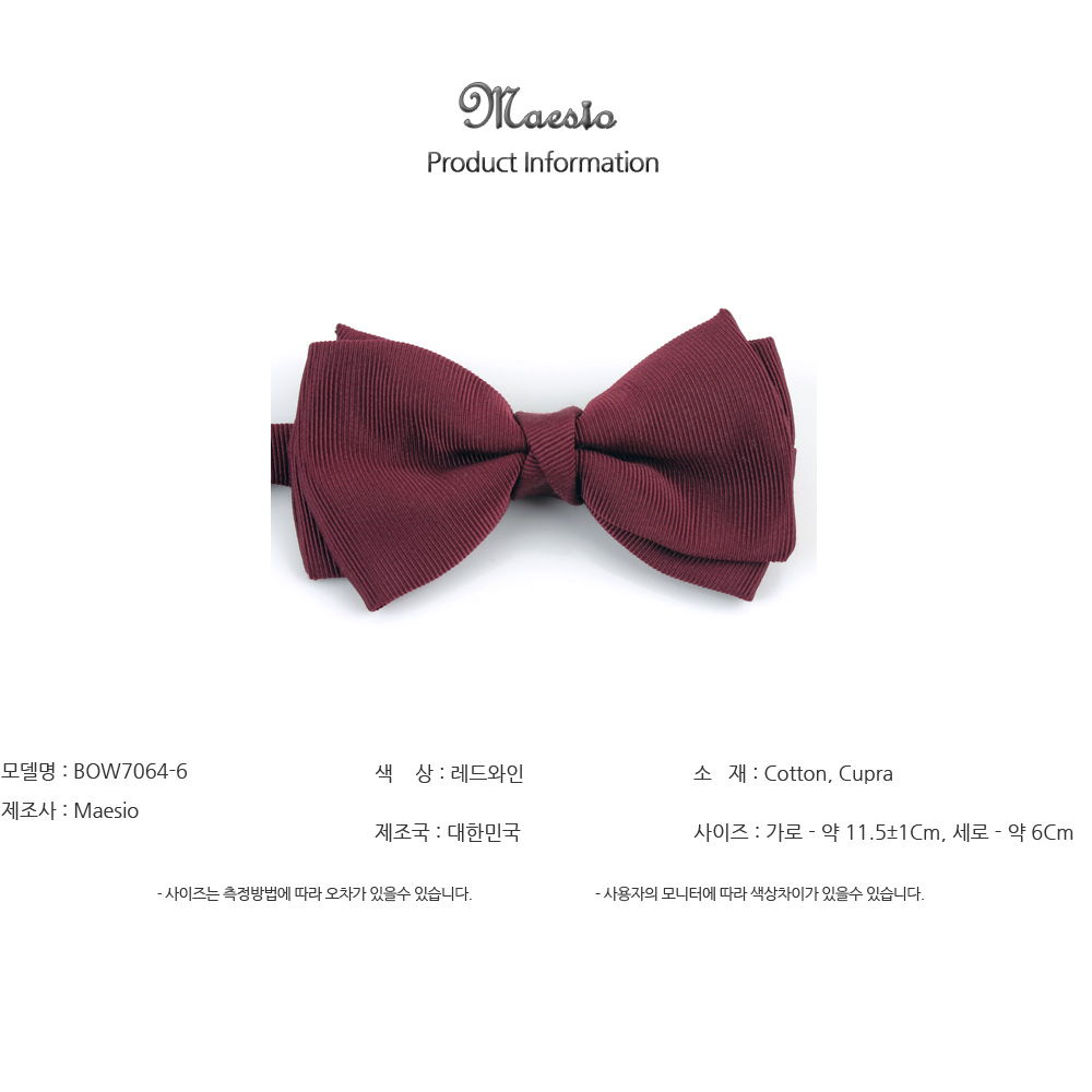 MAESIO BOW7064 Solid Bow Tie – Business, Office Look, Tuxedo, Wedding, Party _ Made in KOREA