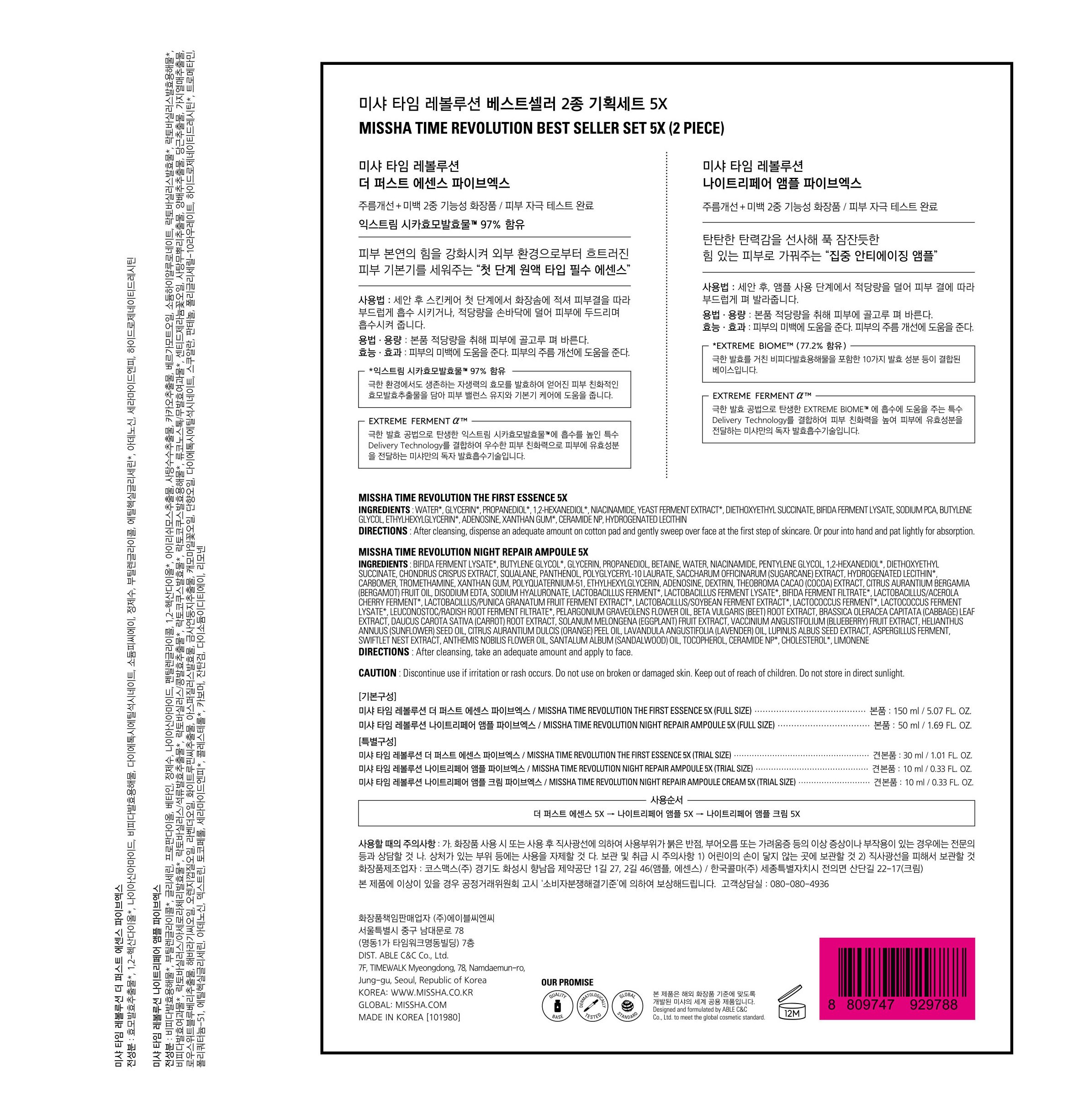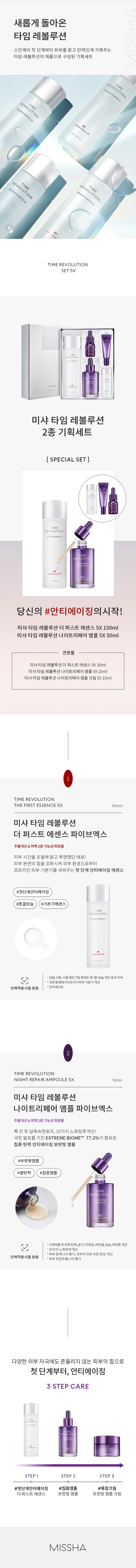 MISSHA Time Revolution Bestseller 2-piece Special Set 5X (The First Essence 150ml + Night Repair Ampoule 50ml) _ Made in Korea