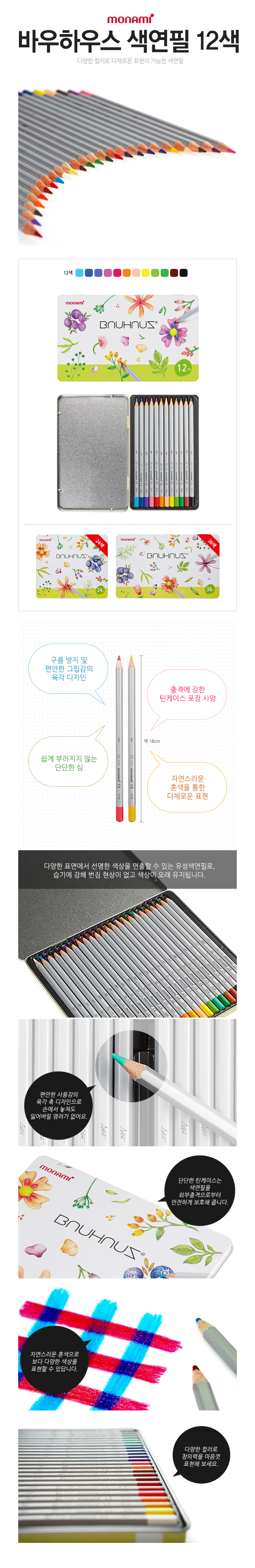 [Monami] BNUHNUZ Oil-Based Colored Pencil 12 Color Set / Tin Case | Hexagonal Barrel | Water-Resistant