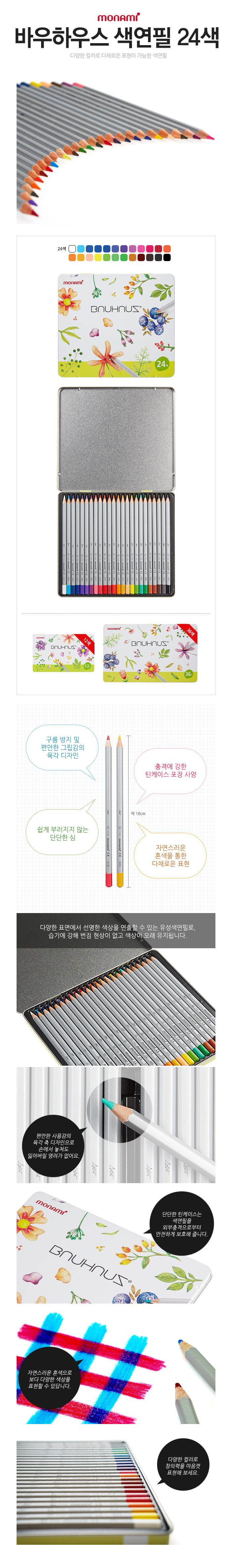 [Monami] BNUHNUZ Oil-Based Colored Pencil 24 Color Set / Tin Case | Hexagonal Barrel | Water-Resistant