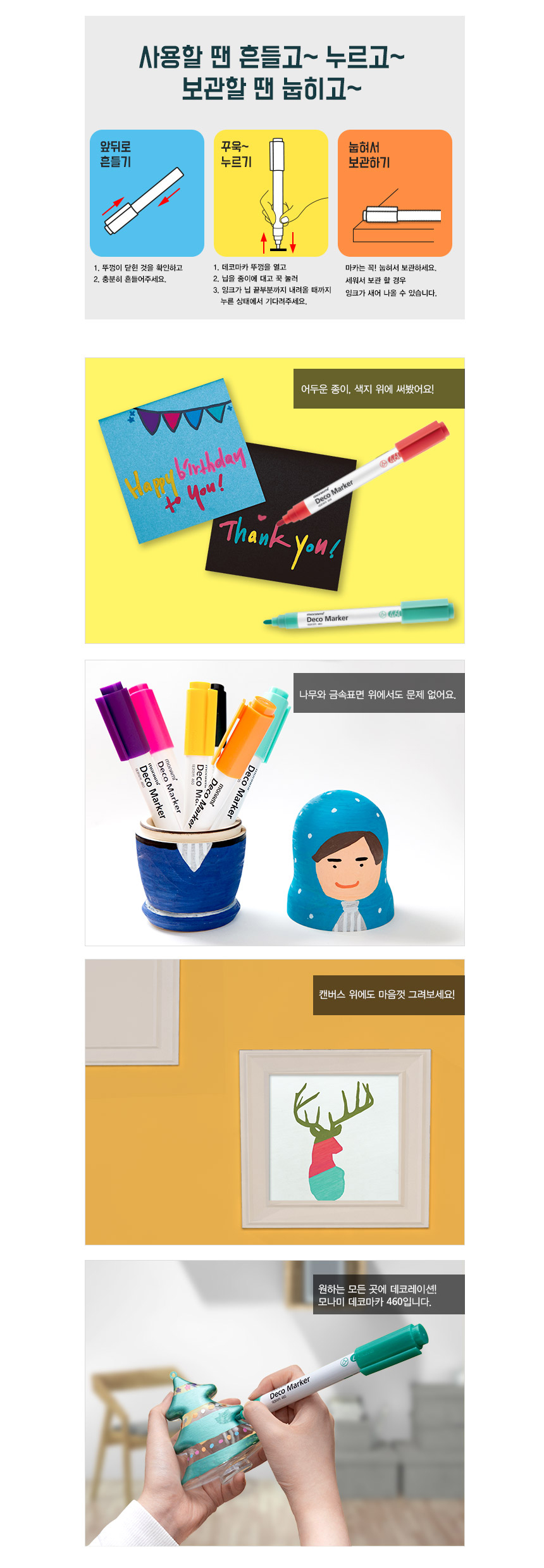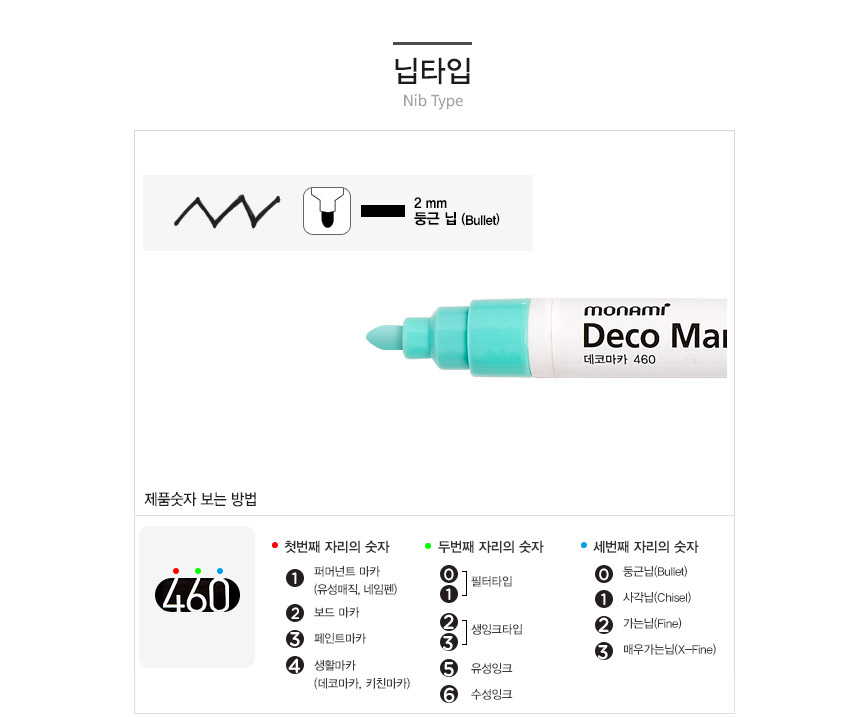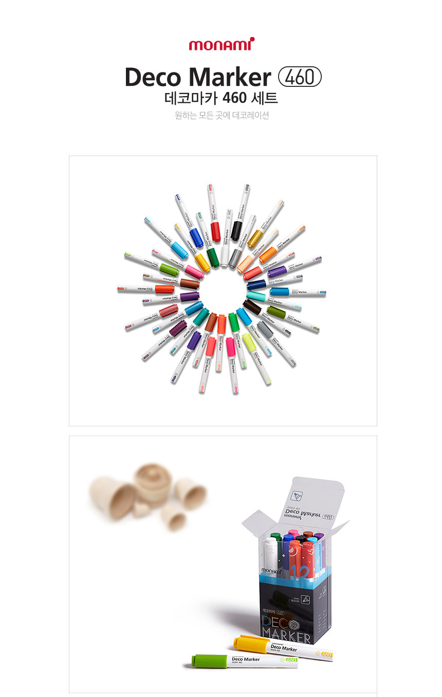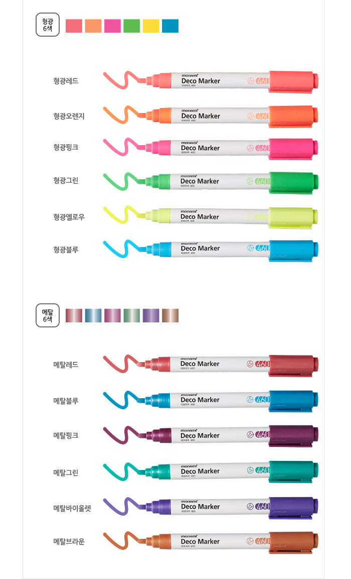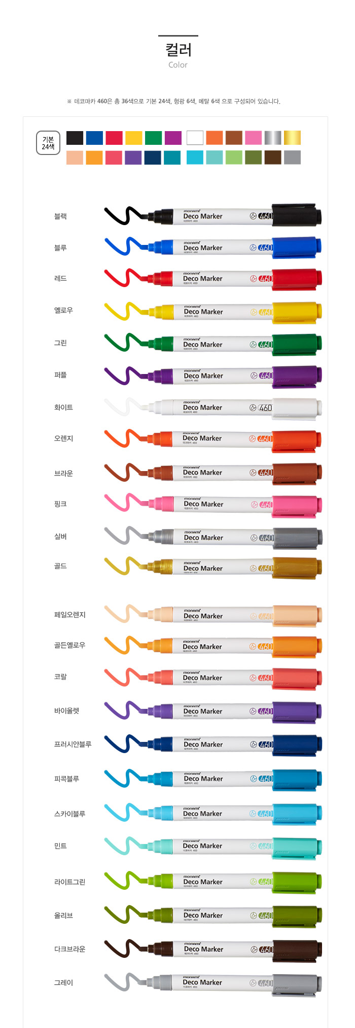 [Monami] Deco Marker 460 Basic (24 colors), Fluorescent (6 colors), Metallic (6 colors) | Water-Based Opaque 2mm Round Nib | Multi-Surface Decoration | Mild Odor | Made in Korea