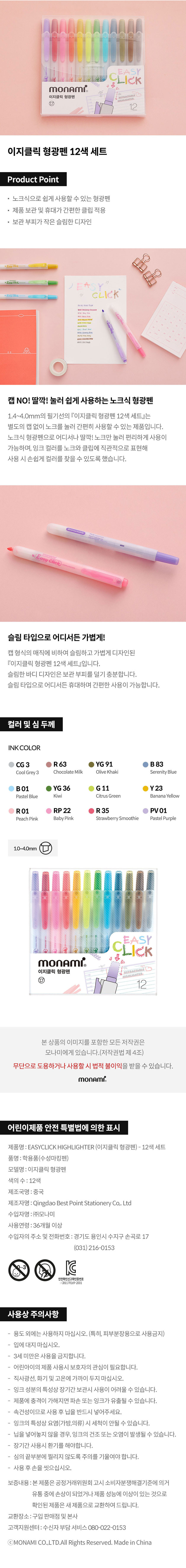 [Monami] Easy Click Highlighter Pen 12 Color Set | Retractable Capless Design | Chisel Tip 1.4–4.0mm | Designed in Korea