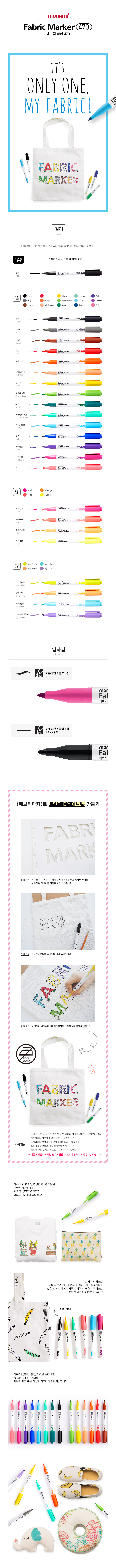 [Monami] Fabric Marker 470 | Brush Tip Pen | No-Iron Cloth/Textile Coloring | DIY | Designed in Korea