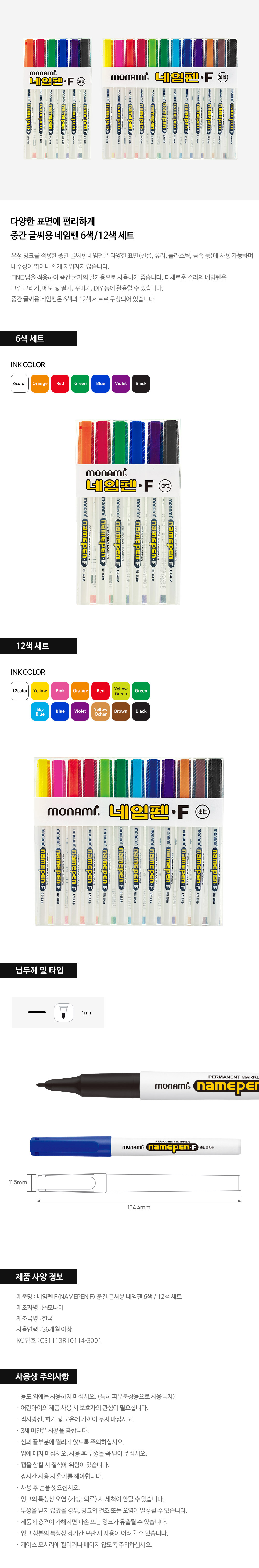 [Monami] Name Pen F 6 Color Set | Fine Nib 1mm Permanent Marker | Water-Resistant/Multi-Surface | Drawing/DIY Optimized | Made in Korea