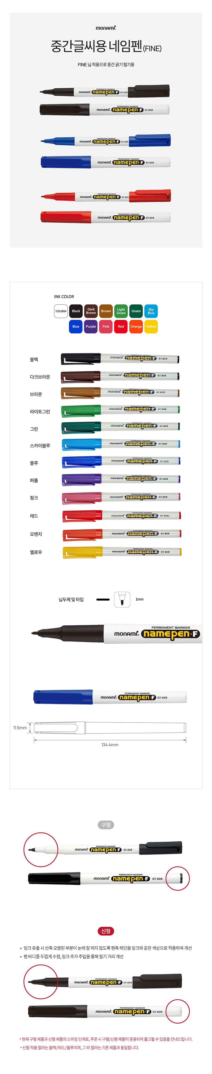 [Monami] Name Pen F (Medium Line) | Fine Nib 1mm Permanent Marker | Black, Red, Blue | Made in Korea