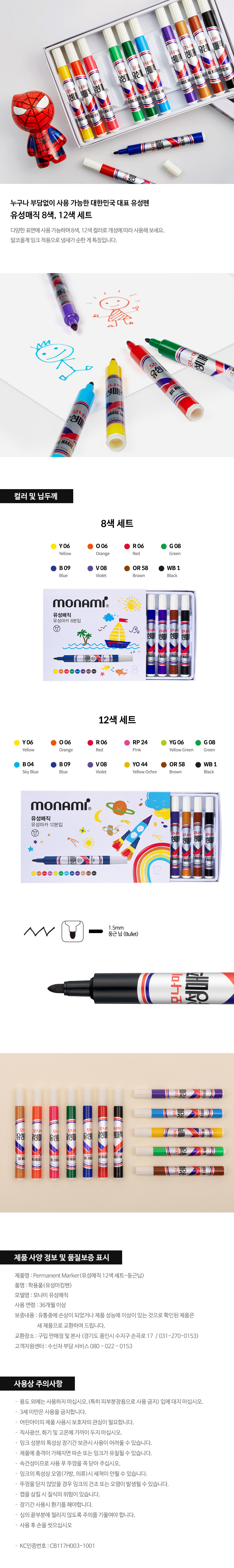 [Monami] Permanent Marker 12 Colors | Round Nib 1.5mm (Bullet) | Mild Odor Alcohol Ink | Made in Korea