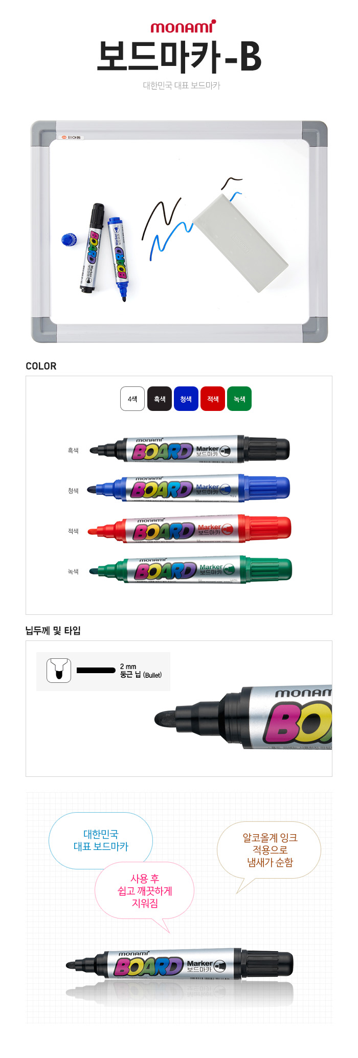 [Monami] Whiteboard Marker / Board Marker | Mild Odor Alcohol Ink | Easy & Clean Erasing | Round Nib 2mm | Made in Korea