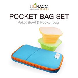 [Moracc] Pocket Silicon Bowl Bag Set _ Orange_ Silicone Collapsible Bowl with Lid Folding Pocket bag Set, Lunchbox, Food Container, Microwave enabled_ Made in Korea