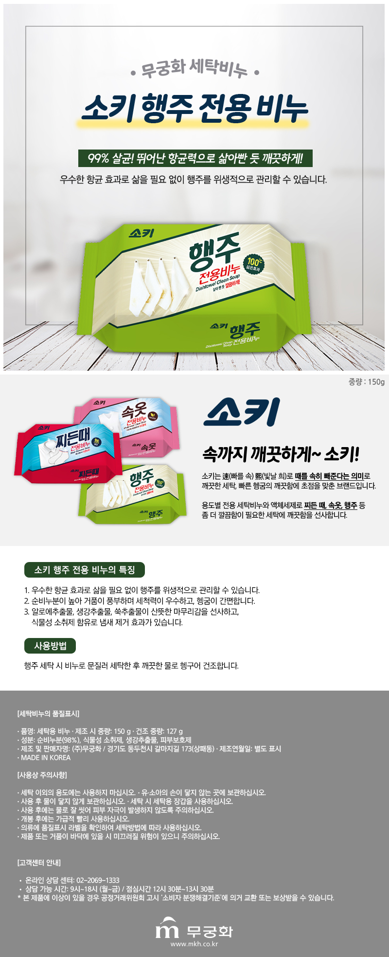 MUKUNGHWA SOKI Dishcloth Bar Soap 150g – 99% Sterilization | Antibacterial & Deodorizing with Aloe, Ginger & Mugwort Extracts _ Made in KOREA