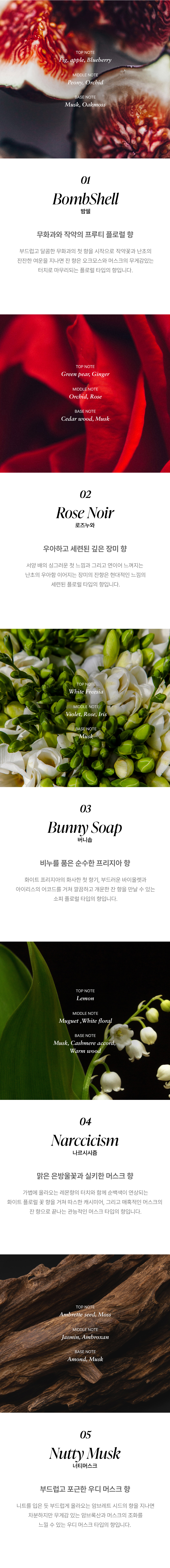 ✿ Nutty Musk: Warm and cozy, with ambrette seed and a comforting knitwear-like feeling. The scent deepens into ambroxan and musk for a smooth, woody finish.