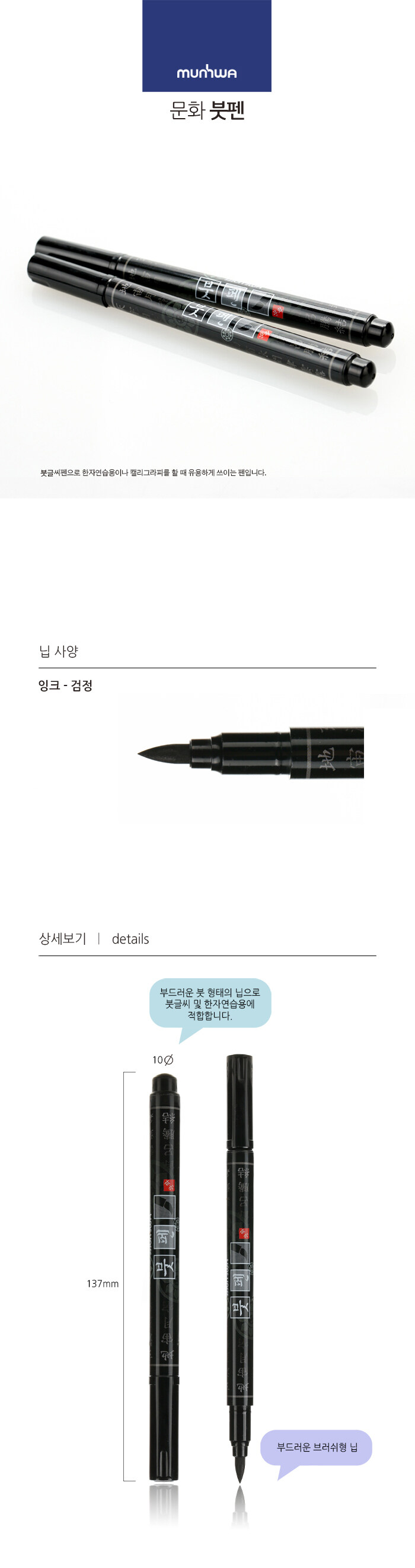 The MUNHWA Brush Pen is the perfect tool for anyone exploring the beauty of Asian calligraphy (Hanja/Kanji) or modern hand-lettering. Its specially engineered soft brush-type nib allows for dynamic line thickness—from delicate hair-thin lines to bold, expressive strokes—depending on the pressure applied. The deep black ink flows consistently without clogging, ensuring a professional finish on every page. Whether you are a student practicing traditional characters or an artist working on creative calligraphy, this pen provides the control and flexibility you need. Proudly made in Korea, it combines traditional artistry with modern convenience.
