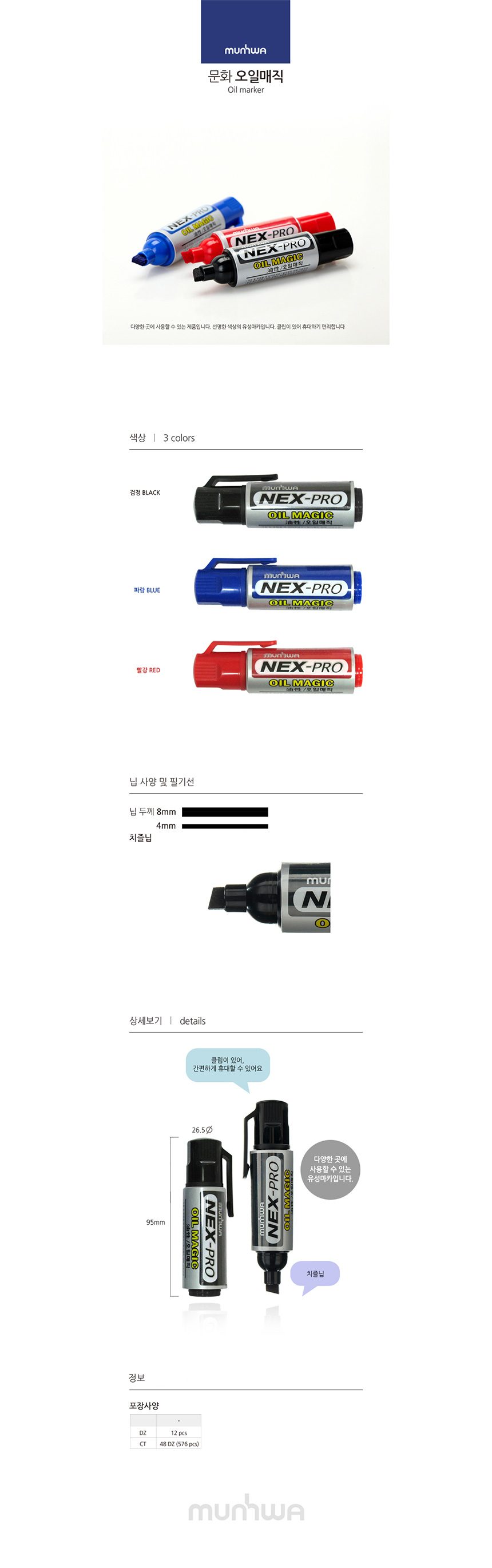 The MUNHWA Cap Magic (Oil Marker) is a professional-grade permanent marker designed for high visibility. Its versatile chisel tip allows you to switch between broad 8mm strokes for large signs and 4mm lines for standard labeling. The high-performance oil-based ink is water-resistant and adheres firmly to metal, plastic, wood, cartons, and stone. Equipped with a sturdy pocket clip on the cap, it is easy to carry on-site or in a warehouse. Whether for construction, logistics, or outdoor signage, this marker provides deep, vivid colors that resist fading. Proudly made in Korea.
