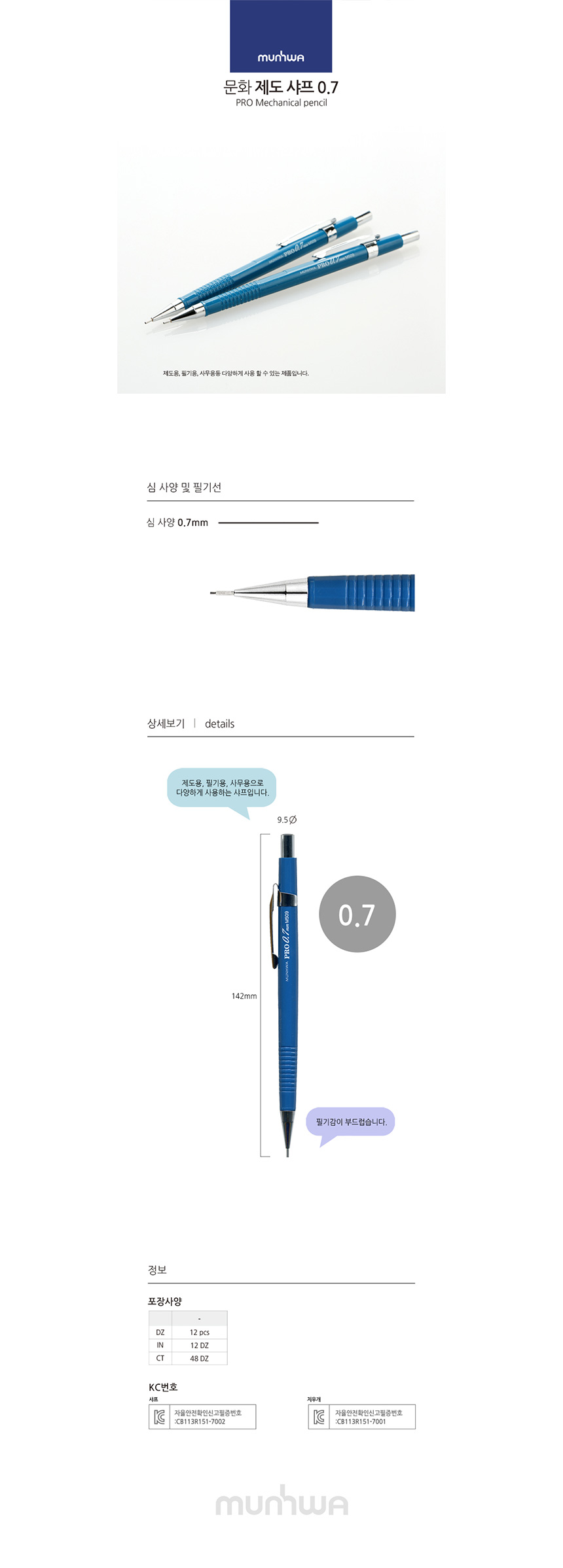 MUNHWA M509 Pro Drafting Pencil 0.7mm | Blue Body | Smooth Professional Lead | KC Certified | Made in Korea