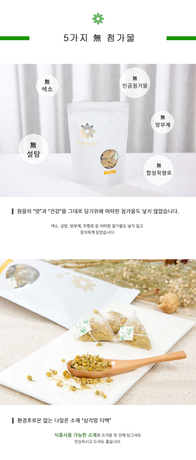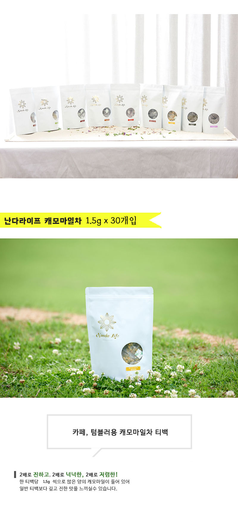 Nanda Life Chamomile Tea, known as the 'apple of the earth,' offers a sweet and refreshing apple aroma that is both fragrant and soothing. Its gentle flavor makes it a perfect, mild herbal infusion suitable even for children to enjoy during a relaxing break. Nanda Life Double Strength Tea offers a bolder flavor and a deeper aroma compared to standard tea bags. Packed with natural nutrients, this 1.5g extra-rich herbal tea is specially designed for those who enjoy an intense and healthy wellness routine in their daily life.