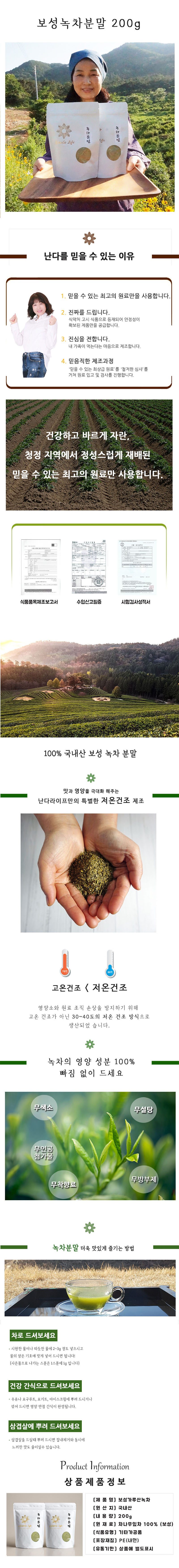 Nanda Life Green Tea (Nokcha) Powder is sourced exclusively from Boseong, South Jeolla-do, the most prestigious region in Korea for high-quality tea cultivation. This vibrant green powder offers a clean, refreshing taste with a delicate hint of bitterness. Naturally rich in Catechin, Caffeine, Theanine, and Vitamin C, it is a powerful source of antioxidants. Catechins are well-known for inhibiting free radicals and supporting healthy body fat management, making this a perfect addition to your daily wellness routine.