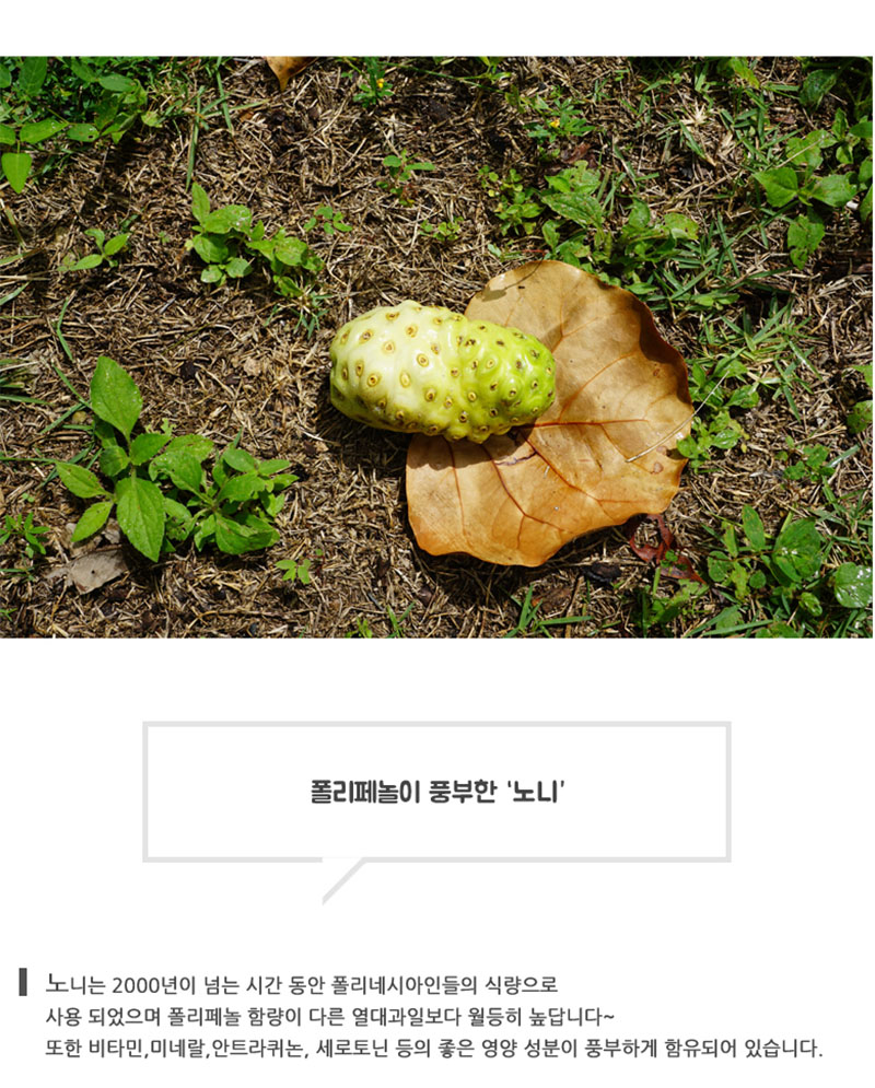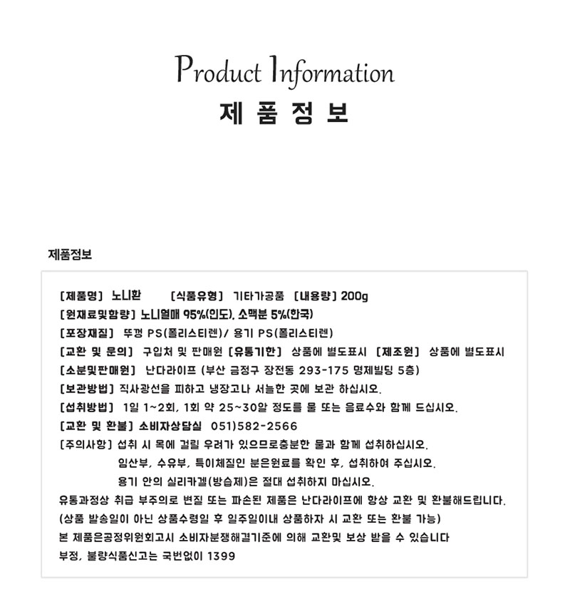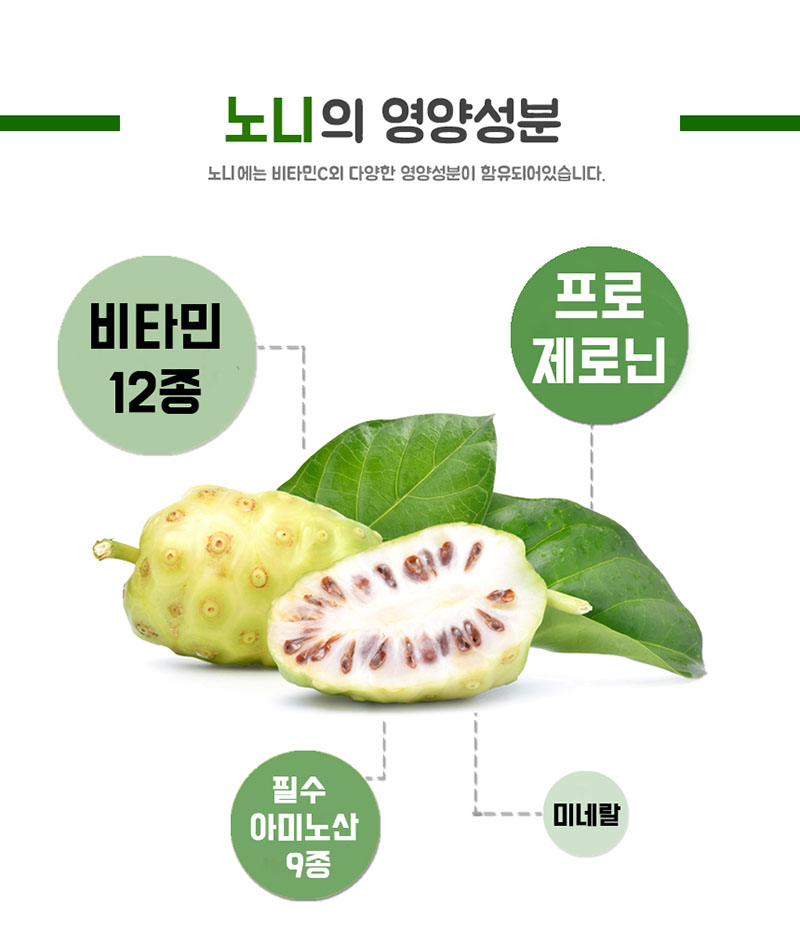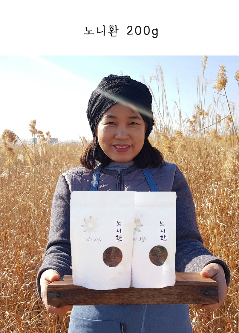 95% Noni Fruit (Origin: India), 5% Wheat Flour (Origin: Korea)