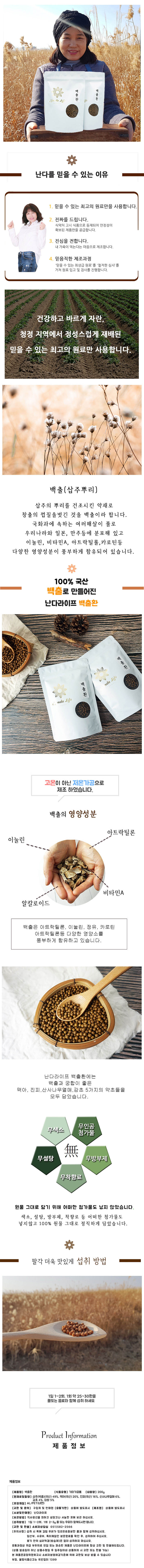 Nanda Life White Atractylodes Root (Baekchul) Pills feature a carefully selected blend of 49% Korean Baekchul and complementary herbs including Malt, Dried Tangerine Peel, Hawthorn Fruit, and Licorice. Baekchul is the peeled and dried root of the Atractylodes ovata, a perennial plant cherished in East Asian traditional wellness. Naturally rich in Inulin, Vitamin A, Atractylol, and Carotene, this formula is designed to support digestive comfort and daily energy balance.