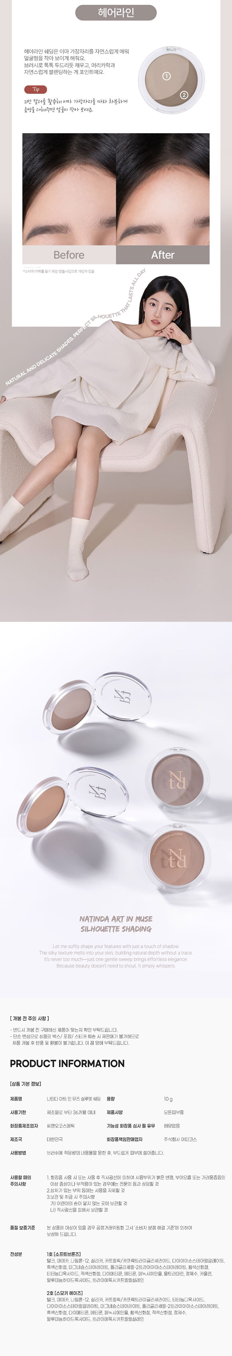 NATINDA Art In Muse Silhouette Shading 10g Dual Color Palette for Natural Facial Contouring - Made in Korea
