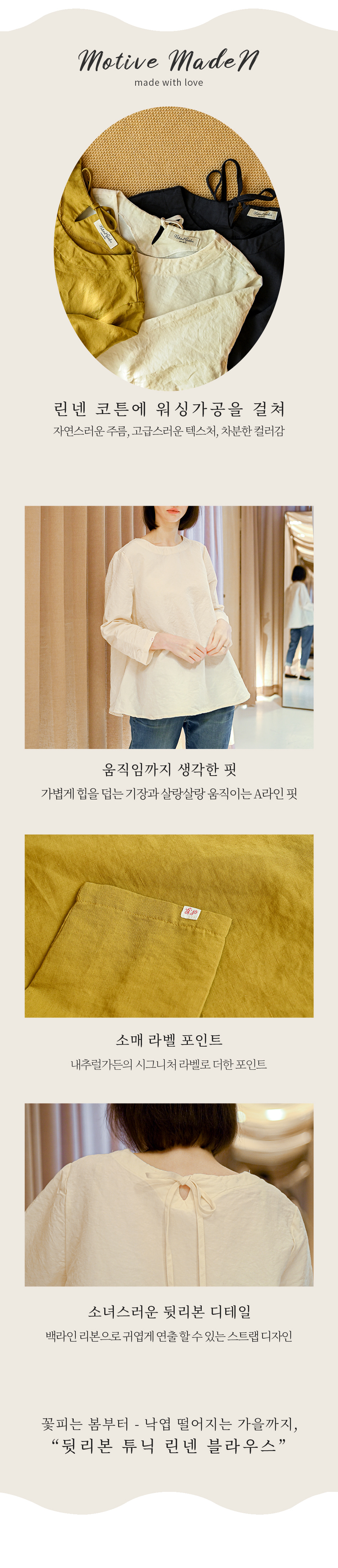 [Natural Garden] MADE N Back Ribbon Tunic Linen Blouse_High quality material, linen material, A-line fit_ Made in KOREA