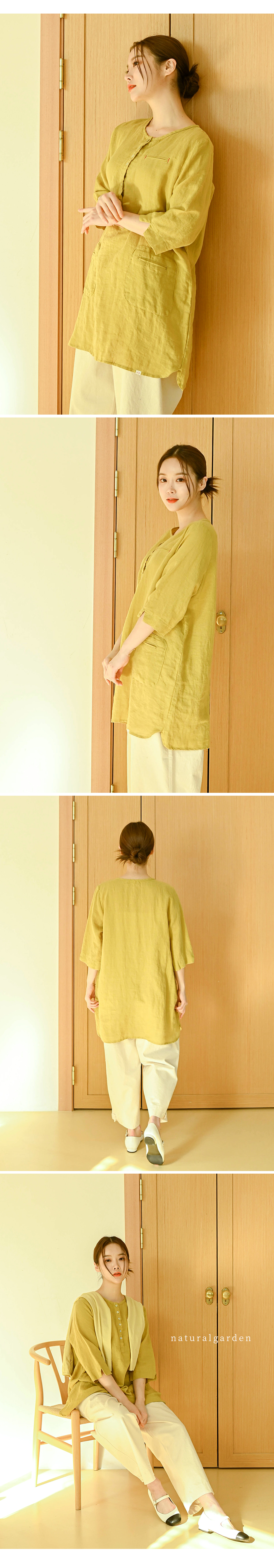 [Natural Garden] MADE N Henley Neck Linen Tunic Blouse_High quality material, linen material, body cover Sammy A-line_ Made in KOREA