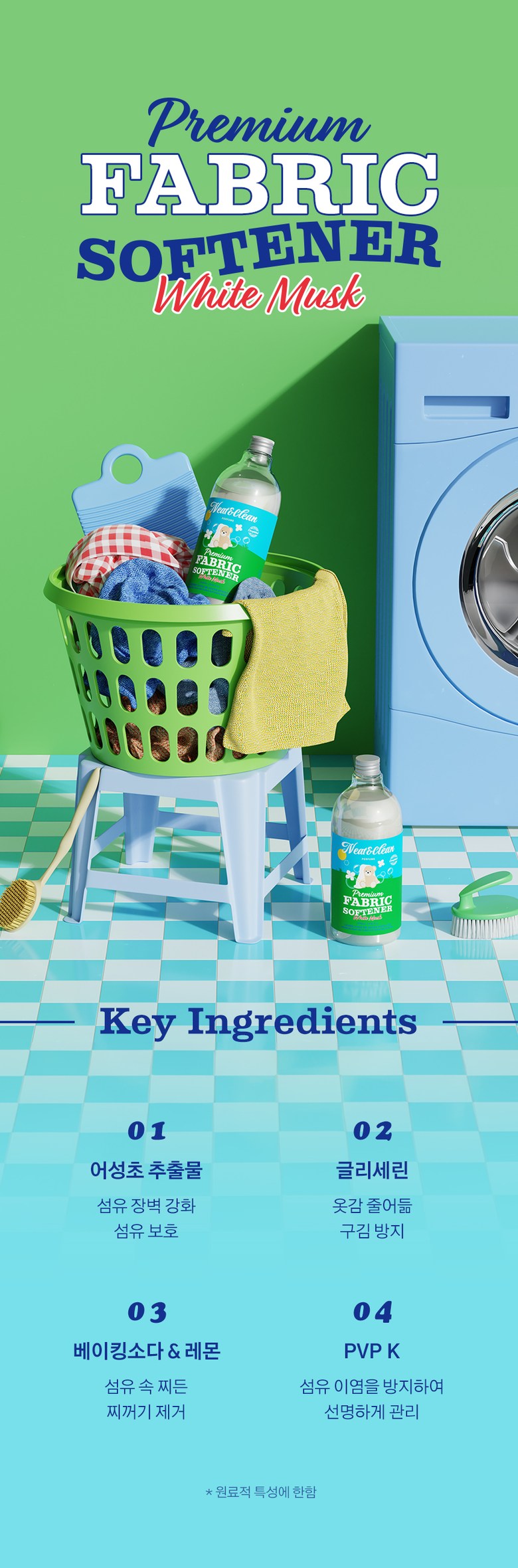 NEAT & CLEAN Premium Perfume Fabric Softener 1000ml Elegant White Musk Scent Long Lasting Fragrance Color Care _ Made in Korea