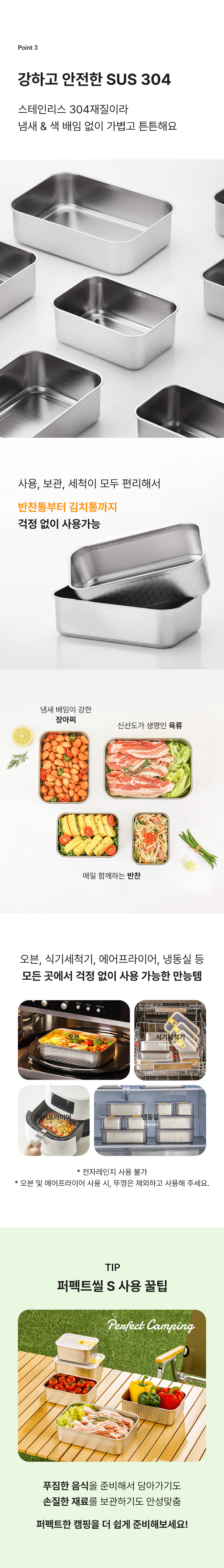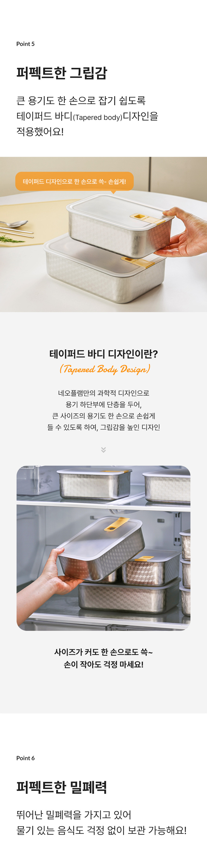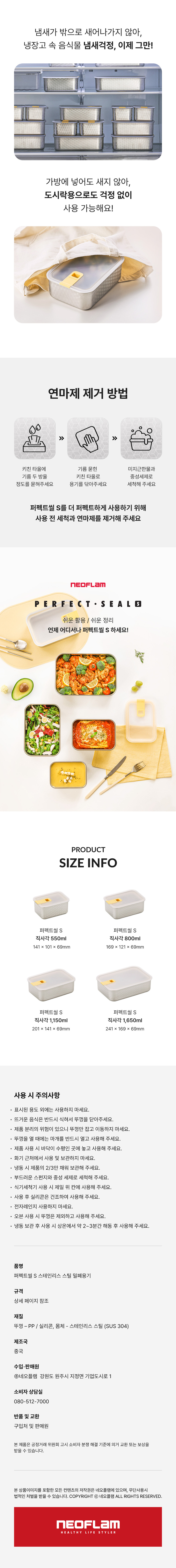 [NEOPLAM] PerfectSeal S Rectangular Airtight Container 3-Piece Set ( 800ml*2+1650ml )(Grid Pattern) – Easy and Safe to Use, Perfect Airtight Seal