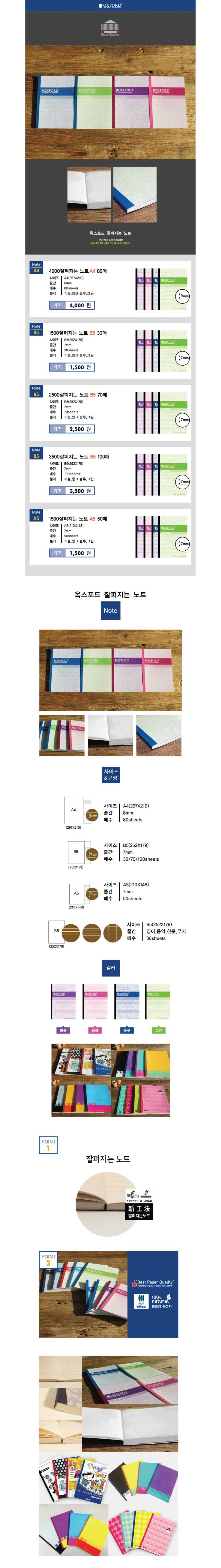 [Oxford] 2500 Lie-Flat Notebook B5 Color | 7mm Lined / 70 Sheets | 252*179mm | Perfect Bound | Made in Korea